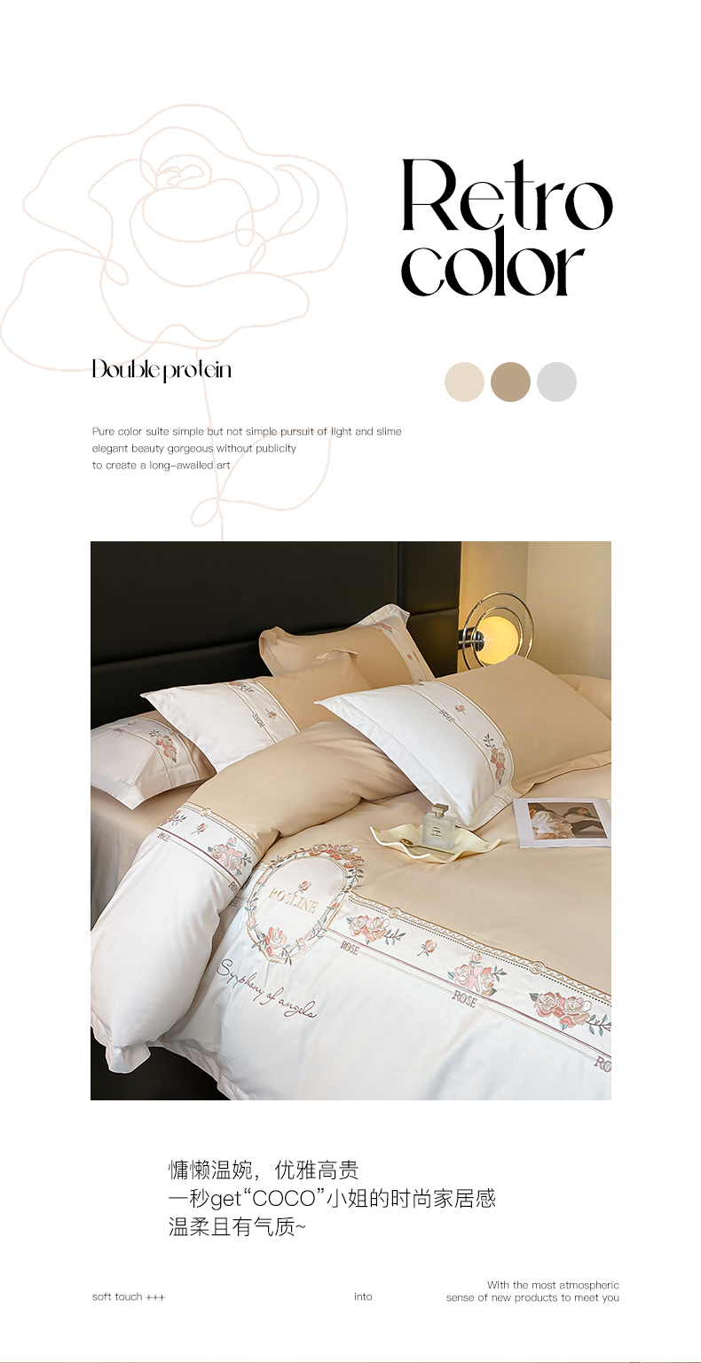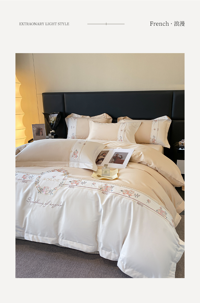 (总)理想家家纺 2025新款纯棉轻奢刺绣四件套-小秘密系列场景二,小秘密 粉,小秘密 黄,小秘密 蓝