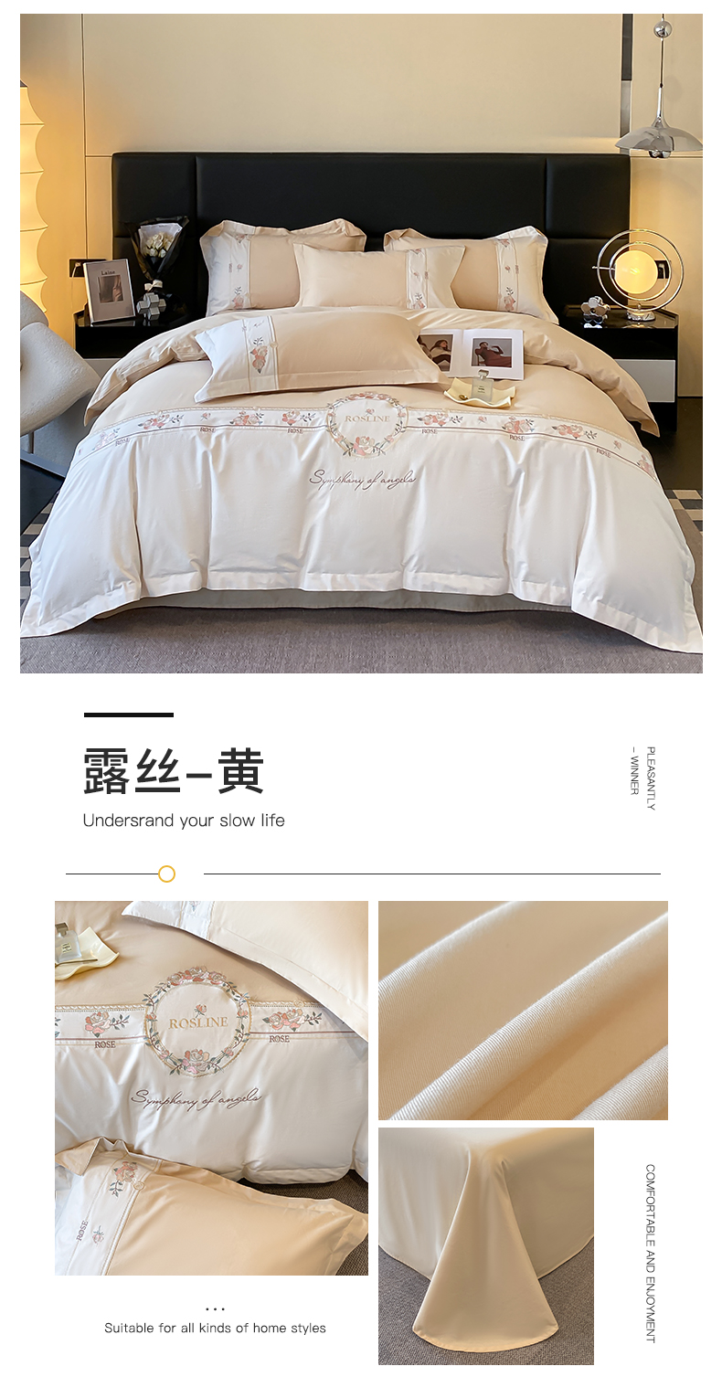 理想家家纺 2024新款全棉刺绣四件套13372露丝 露丝黄