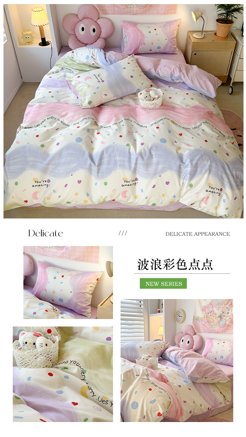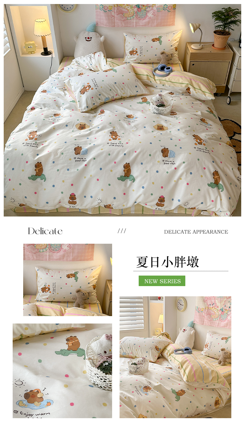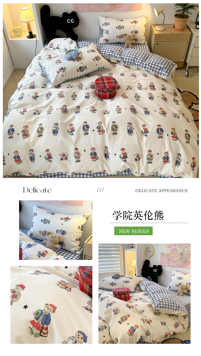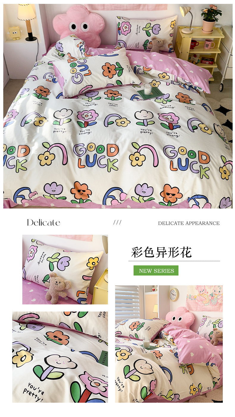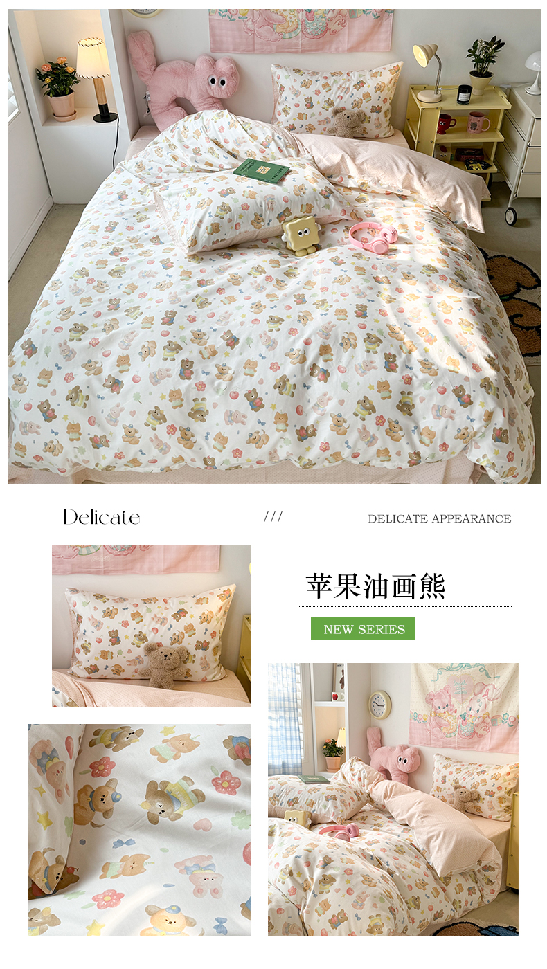 (总)昔可 2023新款学生季卡通普通款四件套,彩色气球熊,彩条恐龙,憨憨熊,花蜜小兔,蘑菇兔,圈圈草莓,蔬菜小兔,郁金香小萌狗