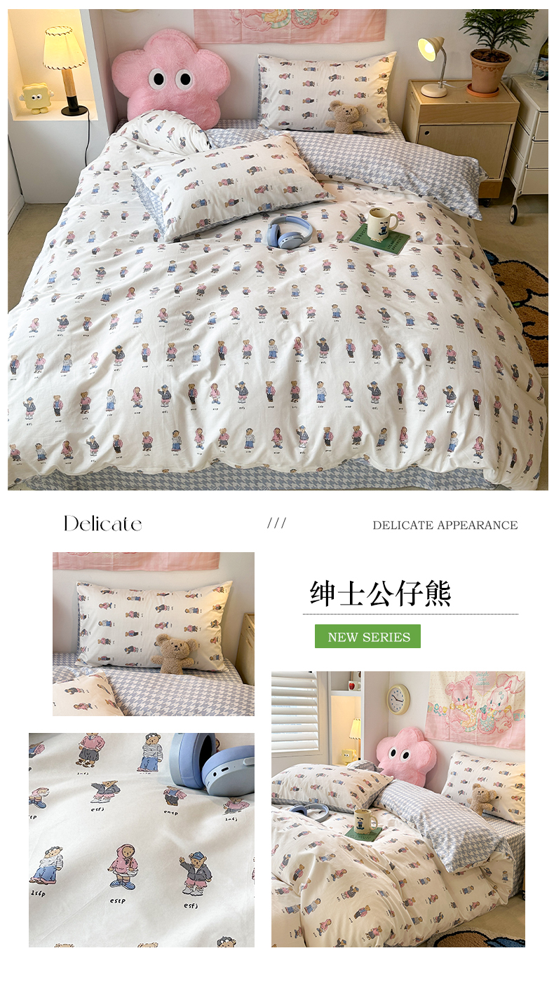 (总)昔可家纺 2023新款全棉小卡通系列四件套,条纹狗狗,童年玩偶蓝,小小可爱熊咖,小小可爱熊蓝,小鸭鸭,郁金香蜜桃,字母恐龙