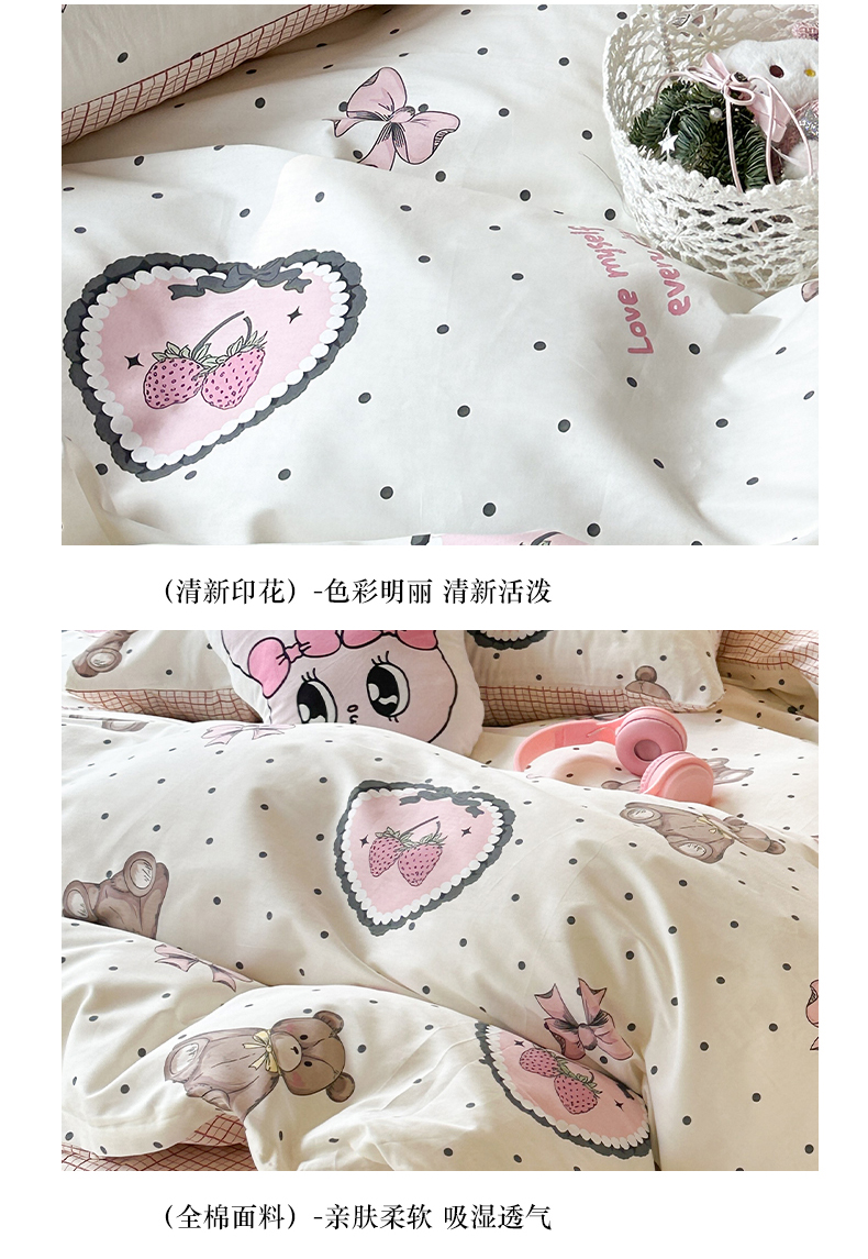 (总)昔可 2023新款学生季全棉四件套-小花系列,柏林少女,花野迷踪,少女粉草莓,微熏海棠,夏茉莉,小兰花,小小的樱桃,紫色果果,紫色葡萄
