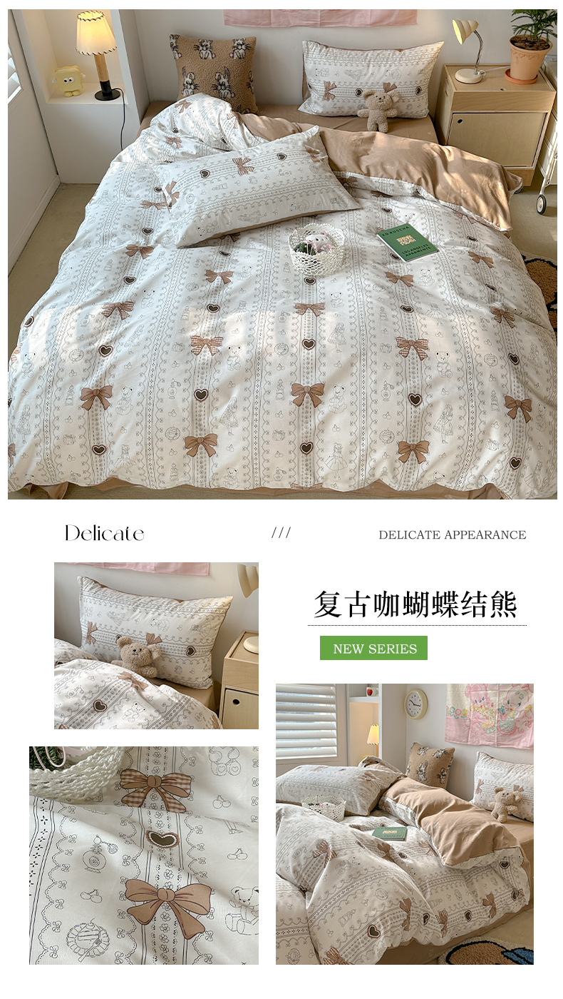 (总)昔可家纺 2024新款印花牛奶绒四件套系列-ins少女系列,芭蕾蛋糕,芭蕾美学,粉格蝴蝶结,黑粉芭蕾蝴蝶结,蓝格蝴蝶结,樱桃奶油蛋糕