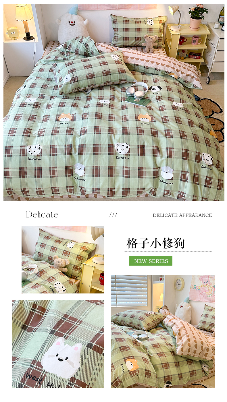 (总)昔可 2023新款全棉ins格子混搭系列四件套,ins简约绿格,粉蓝格,开心果格,学院格纹,粉绿格,海盐兰格,黄绿格,夏日蓝条,芝士黄条,紫芋泥芝士格