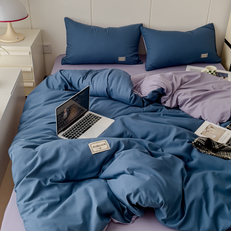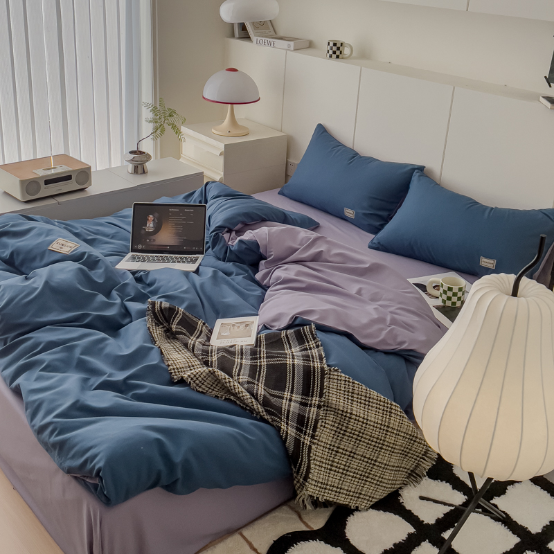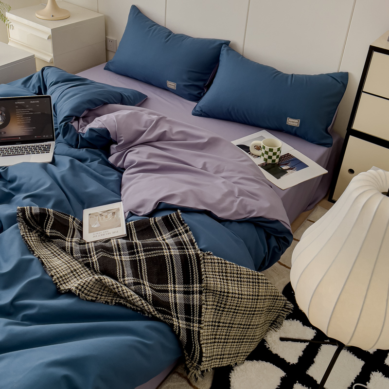 商品名称:蓝淋 2024新春款日式简约婴儿可以啃咬的超柔混搭水洗棉四件套 蓝灰+浅紫