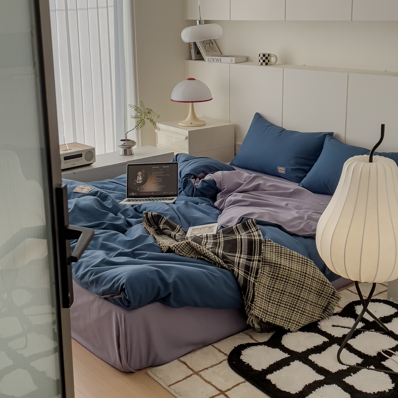 蓝淋 2024新春款日式简约婴儿可以啃咬的超柔混搭水洗棉四件套 蓝灰+浅紫