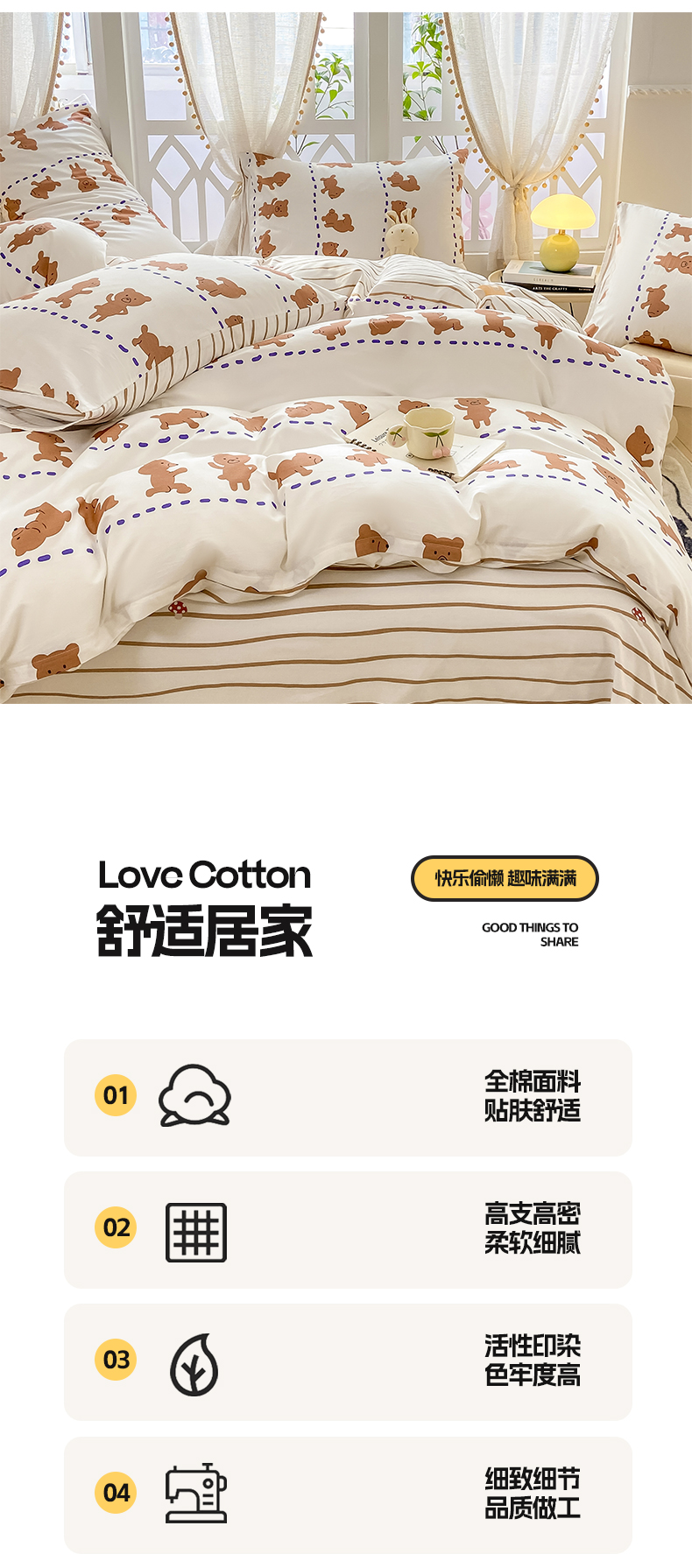 宜家坊 2024新款全棉喷气13070小清新印花四件套-拍摄二 喜瓜瓜