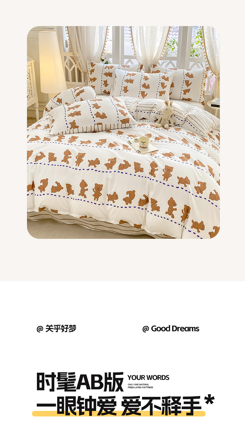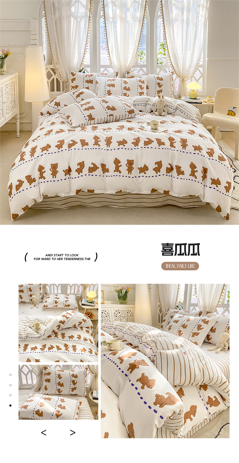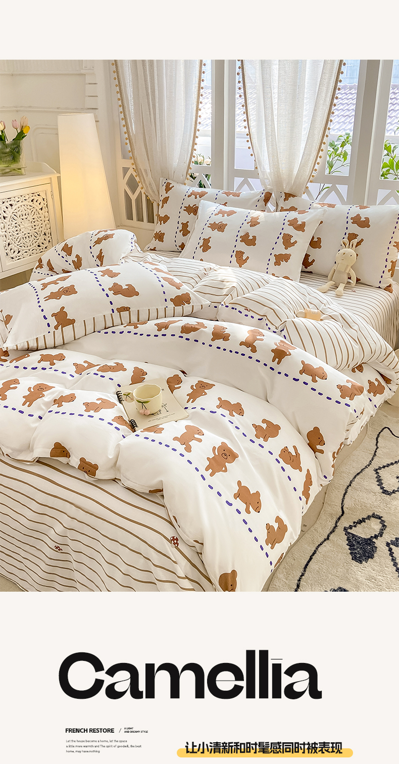 (总)宜家坊 2023新款直播韩版印花花边款牛奶绒四件套,比格熊,草莓兔,春暖花开,告白,加油鸭,流星花园,萌萌熊,牛油果,千鸟格,小女孩,一见倾心,郁金香