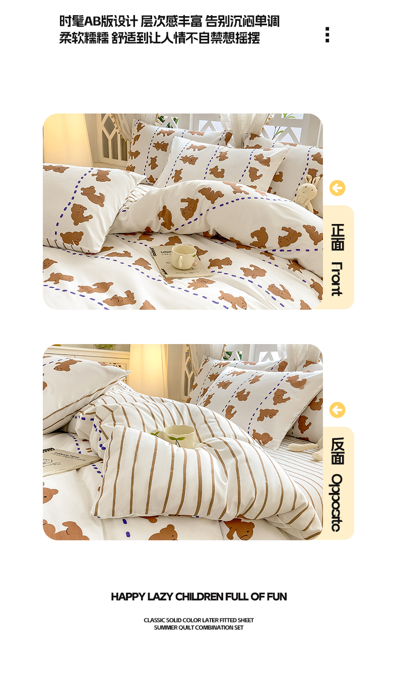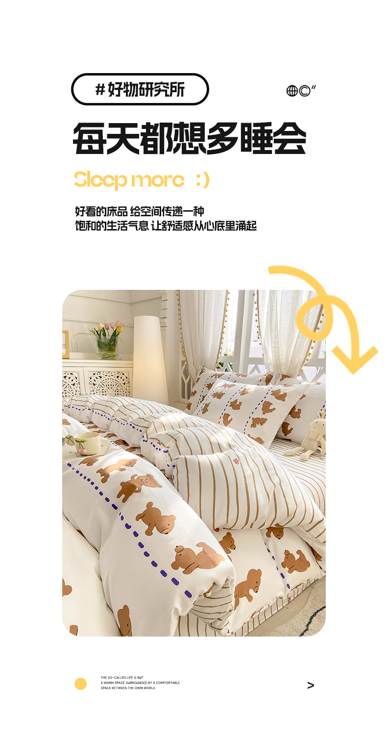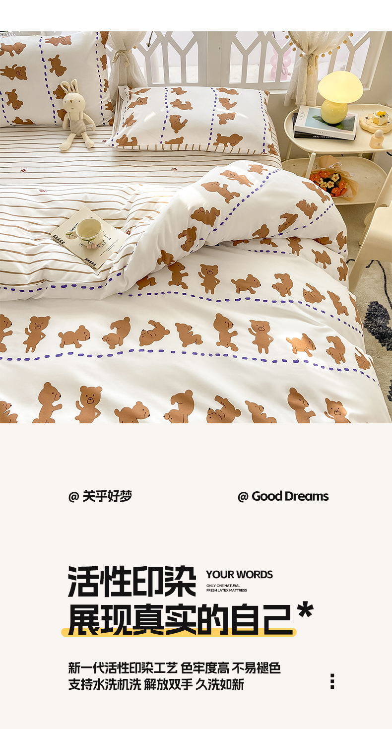 (总)宜家坊 2023新款直播韩版印花花边款牛奶绒四件套,比格熊,草莓兔,春暖花开,告白,加油鸭,流星花园,萌萌熊,牛油果,千鸟格,小女孩,一见倾心,郁金香