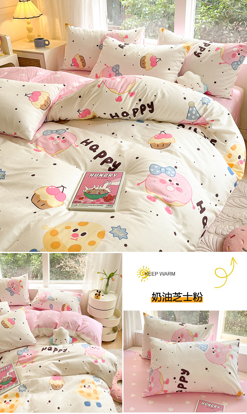 当前位置: 91家纺网 > 商品网购 > 床品套件 > 四件套 > 全棉普通四件套 > 麦伦家居 2024春夏新品ins小清新卡通全棉四件套 奶牛芝士粉