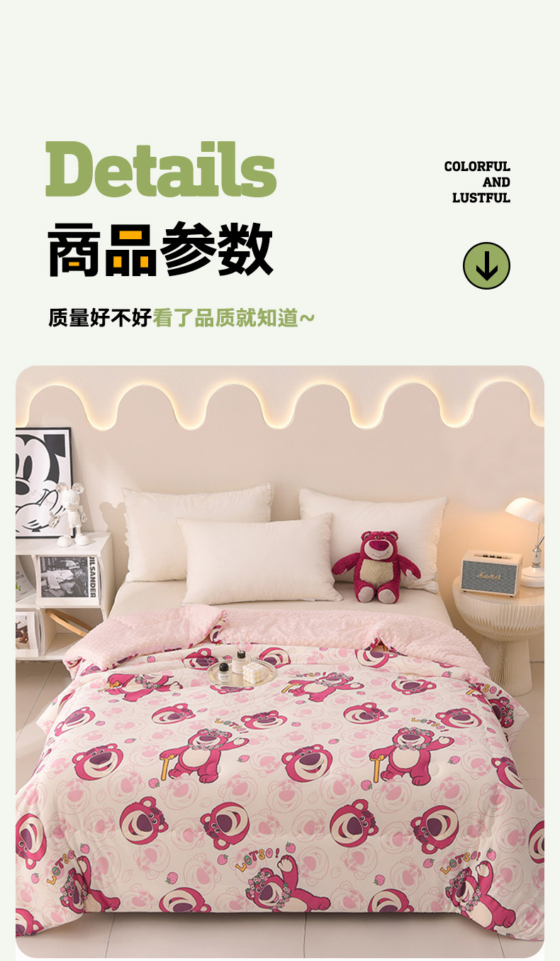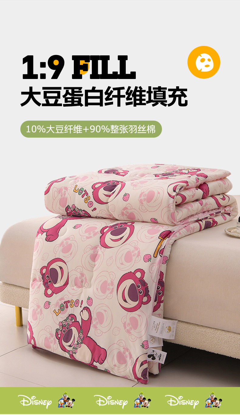 (总)艾兜坊 2023新款亲肤水洗棉大豆纤维被 被子被芯,兰莓之恋,小小花牛,枝繁叶茂,爱心小熊,花间相遇,草莓小兔