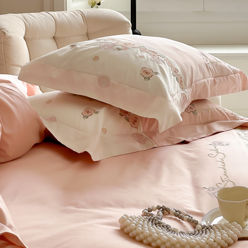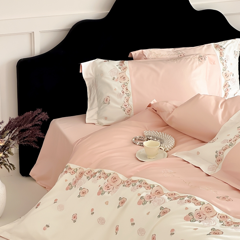 (总)馨蕊家居 2025新款春夏新品天丝印花80SLF奥地利兰精天丝四件套-告白,天丝告白-蔷薇粉,天丝告白-婉若紫