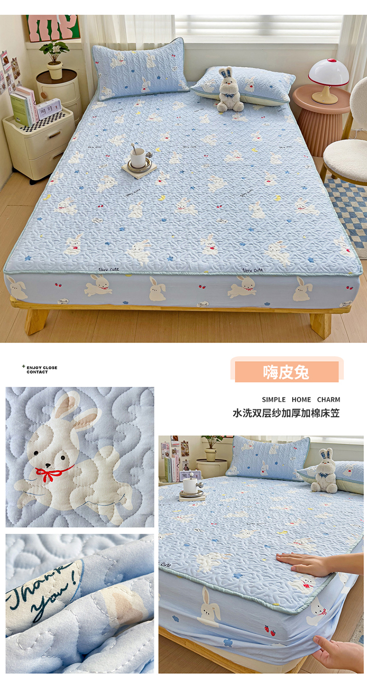 纽缦家纺 水洗双层纱加厚加棉床笠-床垫保护套 嗨皮兔