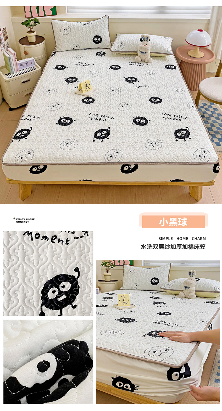 纽缦家纺 水洗双层纱加厚加棉床笠-床垫保护套 小黑球