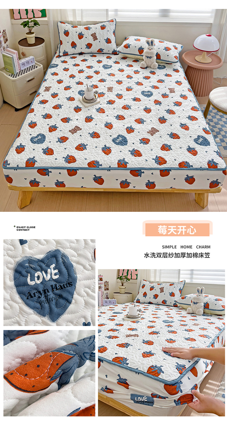 纽缦家纺 水洗双层纱加厚加棉床笠-床垫保护套 莓天开心