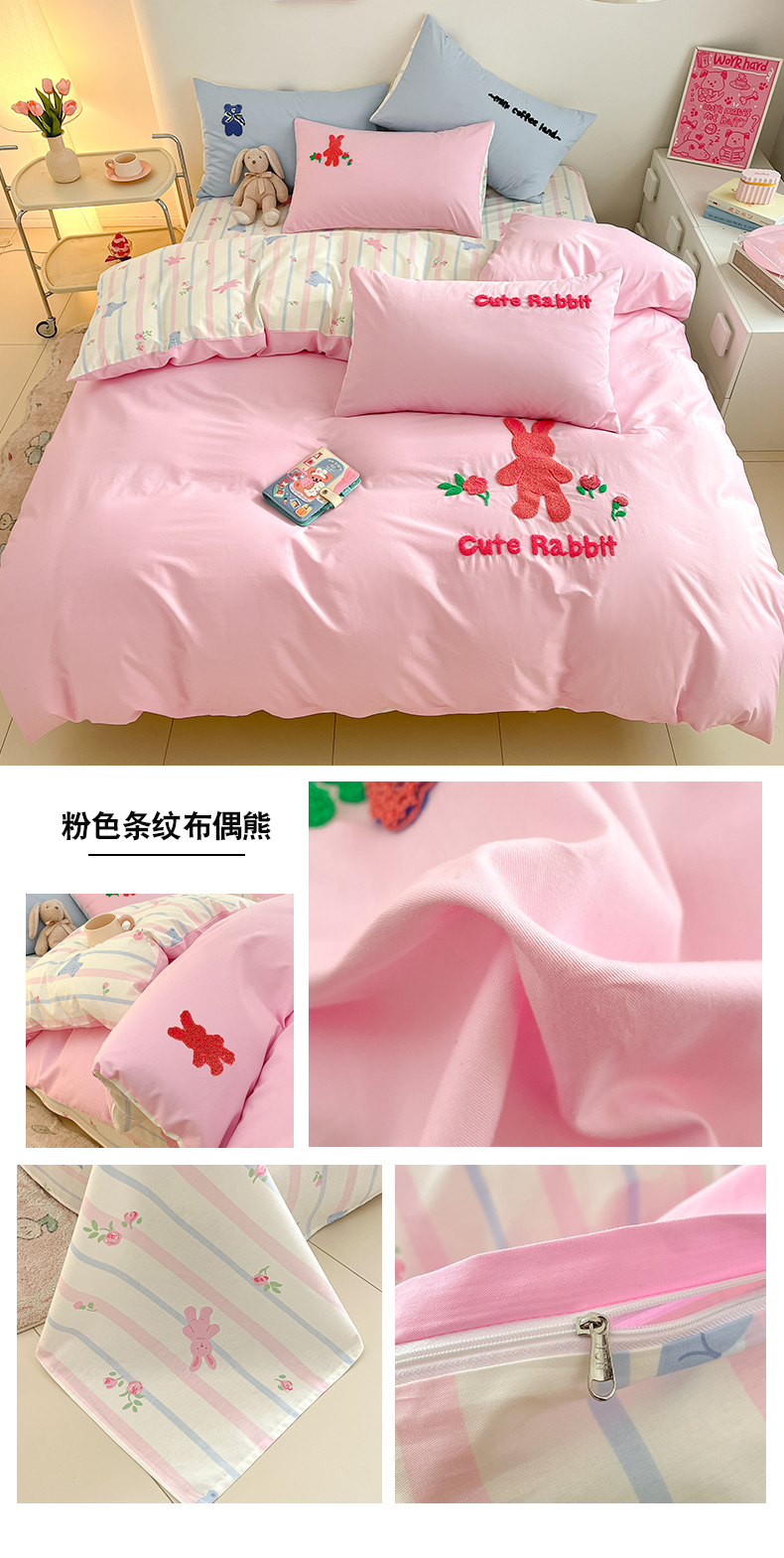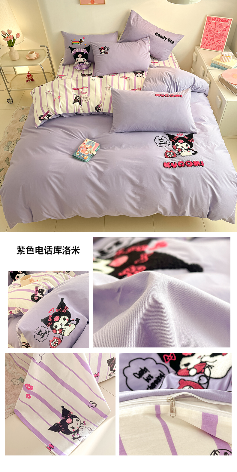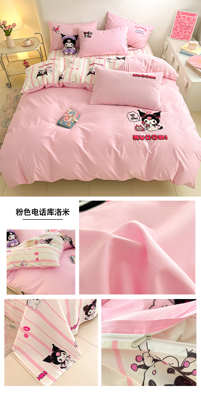 商品名称:(总)金丝鸟家纺 2024新款全棉混搭毛巾绣四件套可爱卡通库洛米系列