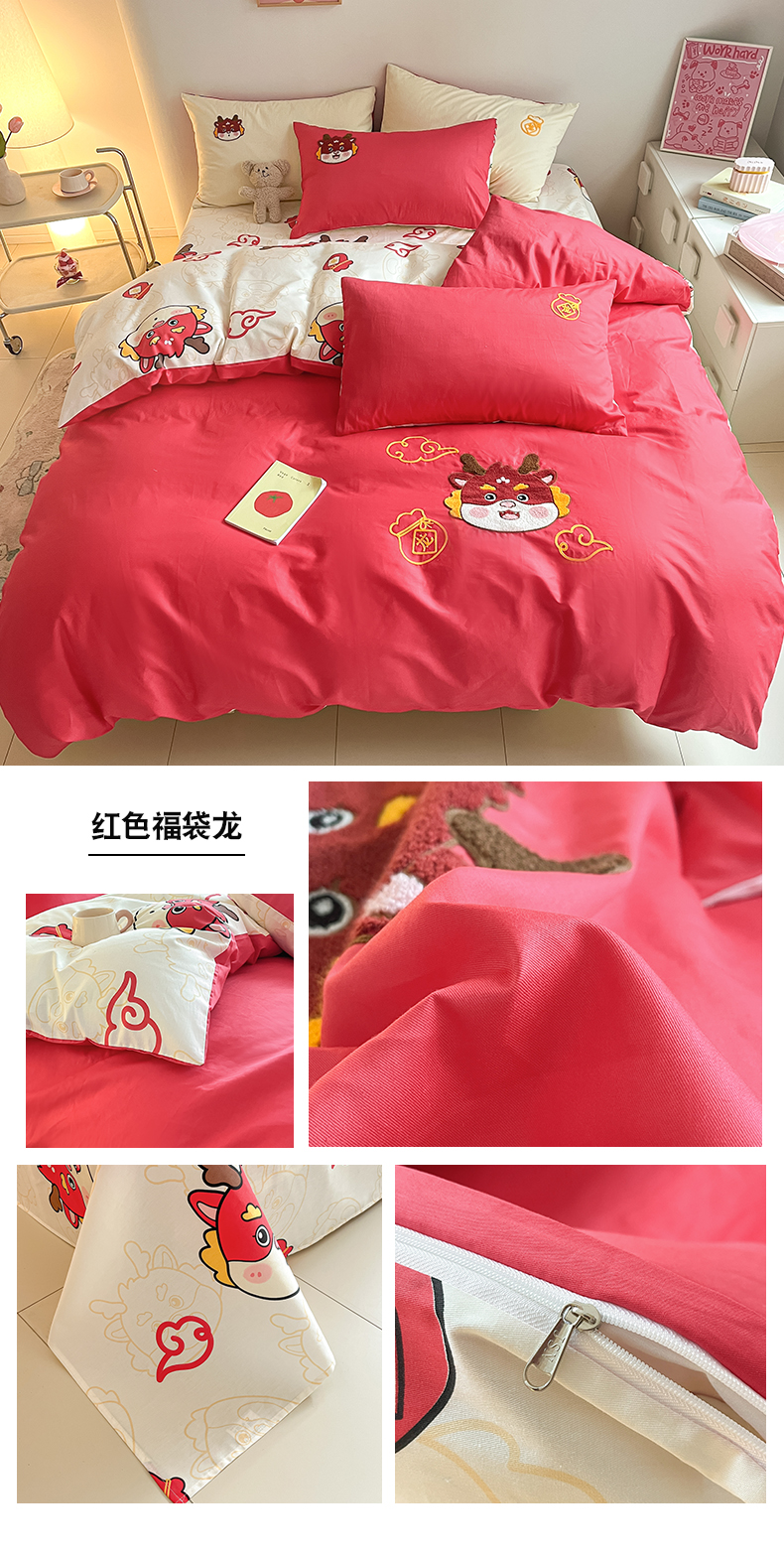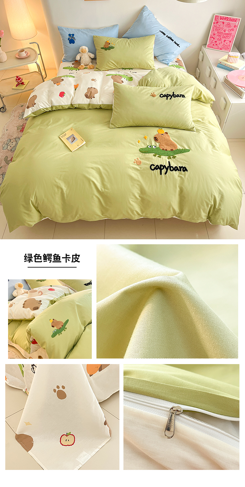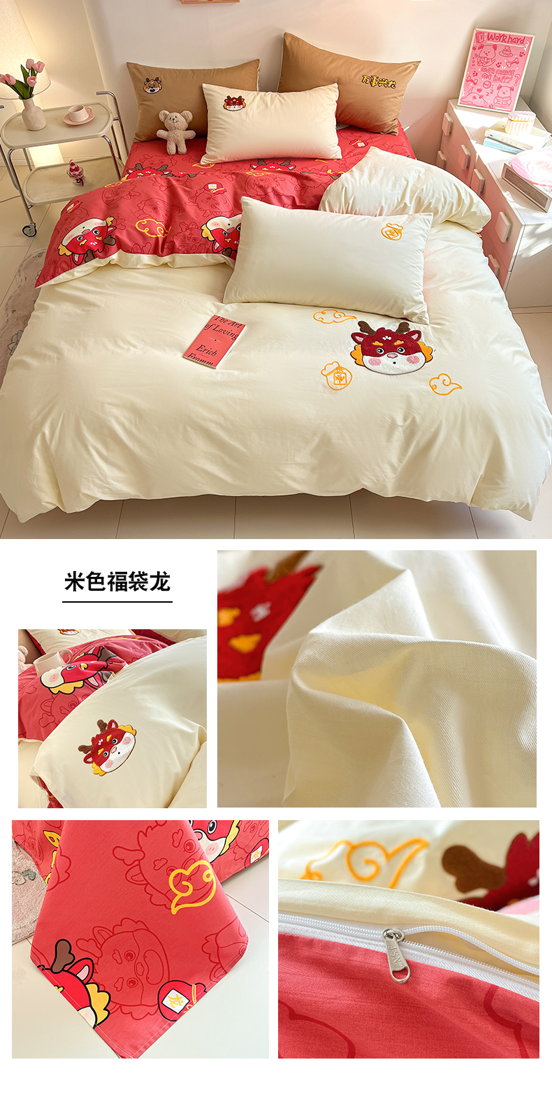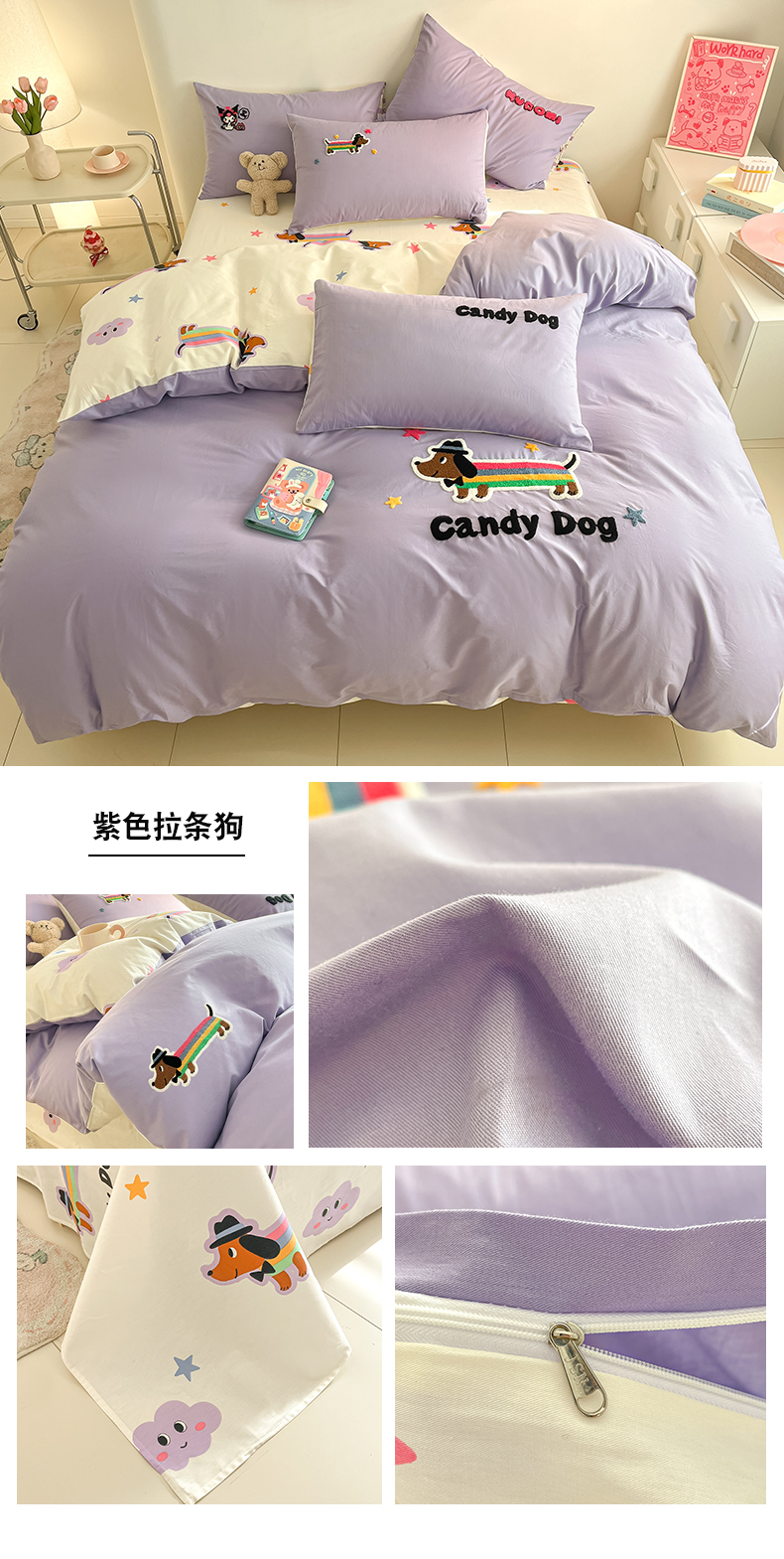 商品名称:(总)金丝鸟家纺 2024新款全棉混搭毛巾绣四件套可爱卡通库洛米系列