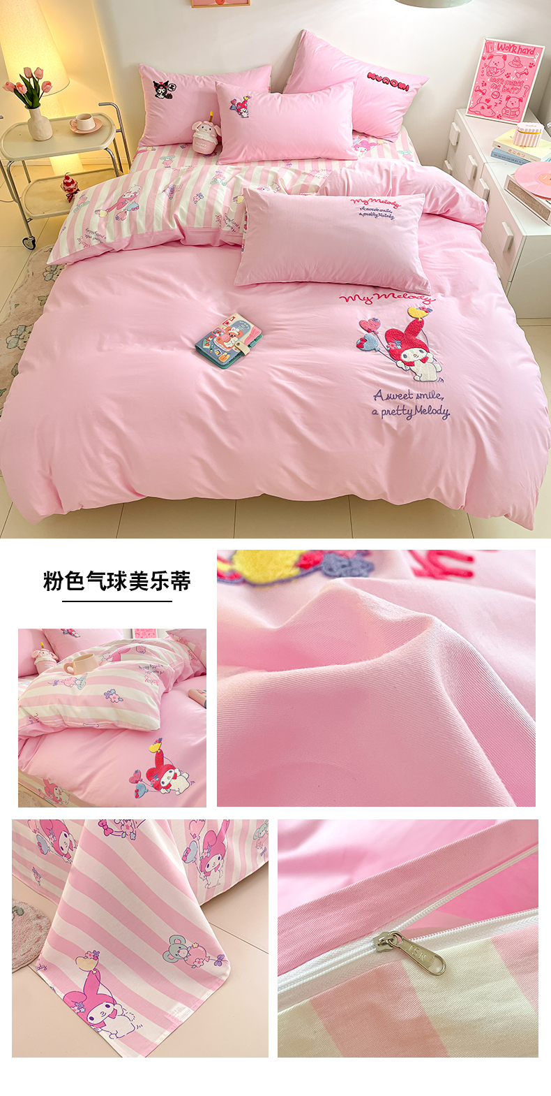 (总)金丝鸟家纺 2025新款三丽鸥系列全棉斜纹13370单品床单,波点美乐蒂,彩虹大耳朵狗,条纹库洛米,晚安kt