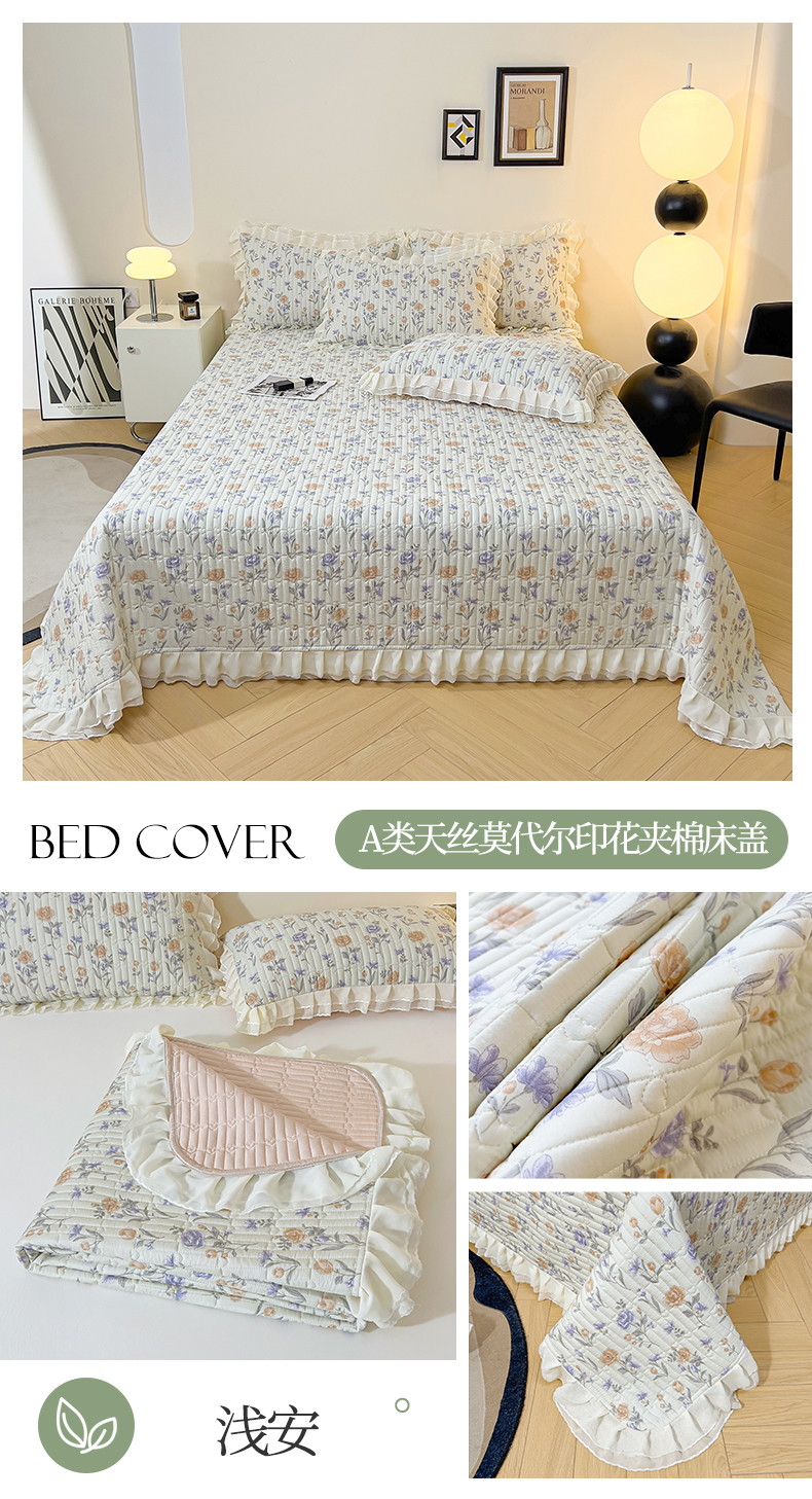 宜凡家纺 2024新款莫代尔印花床盖三件套(两面可用) 浅安