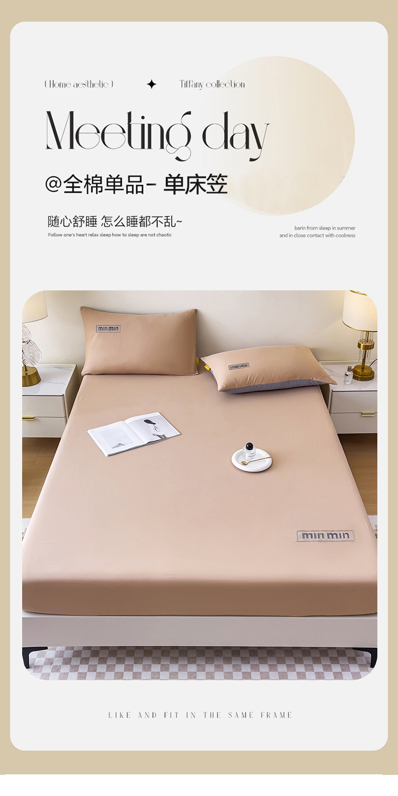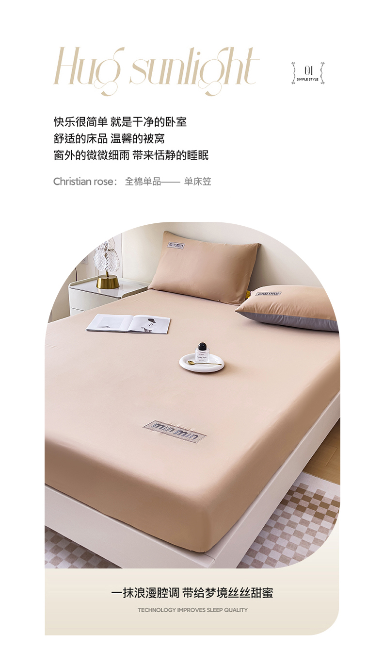 KA 2025春夏新品60S刺绣全棉单床笠 床笠香槟金