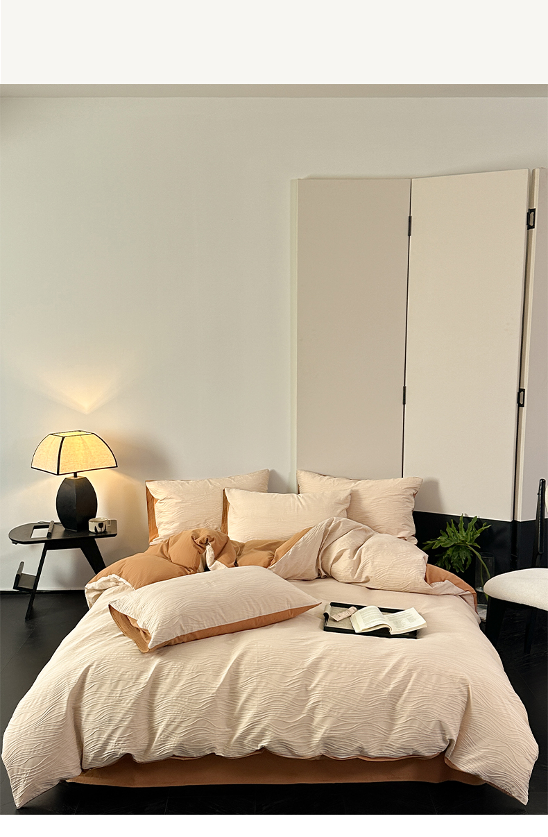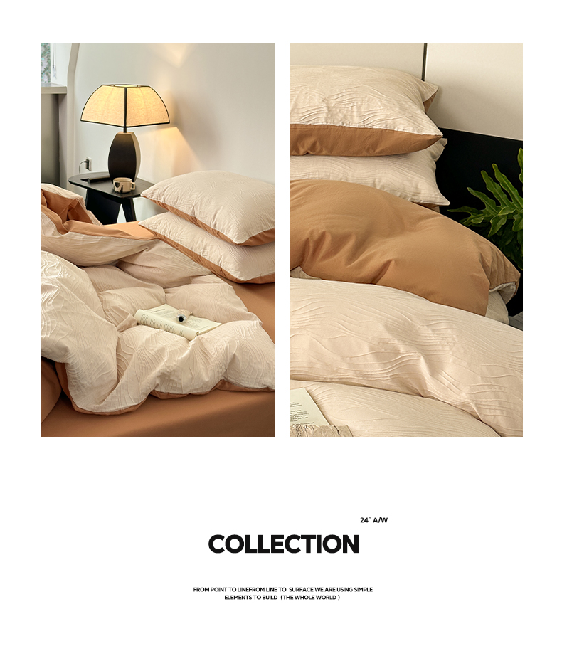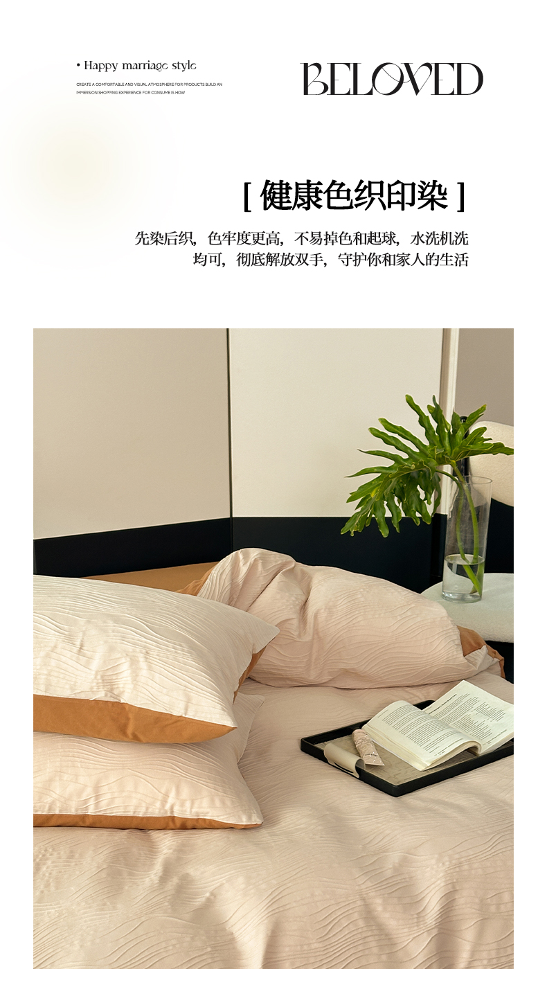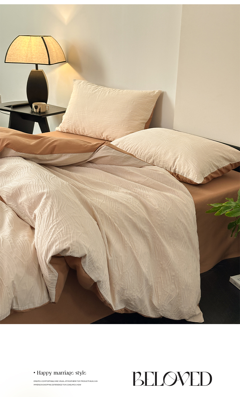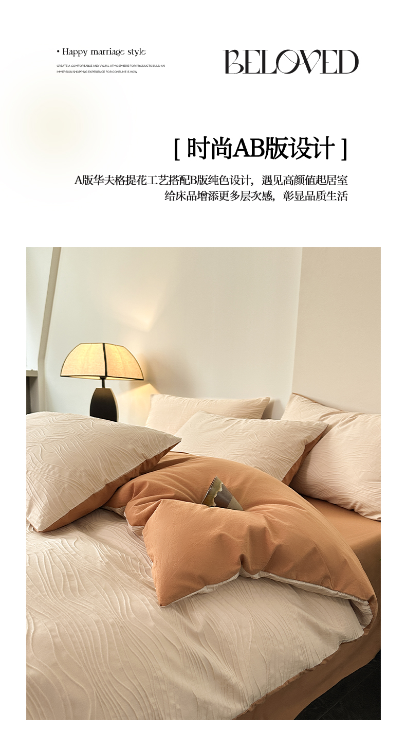 雅居纺家纺 2024新款全棉线条提花四件套-线条 线条-焦糖