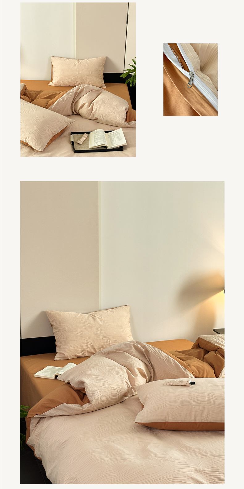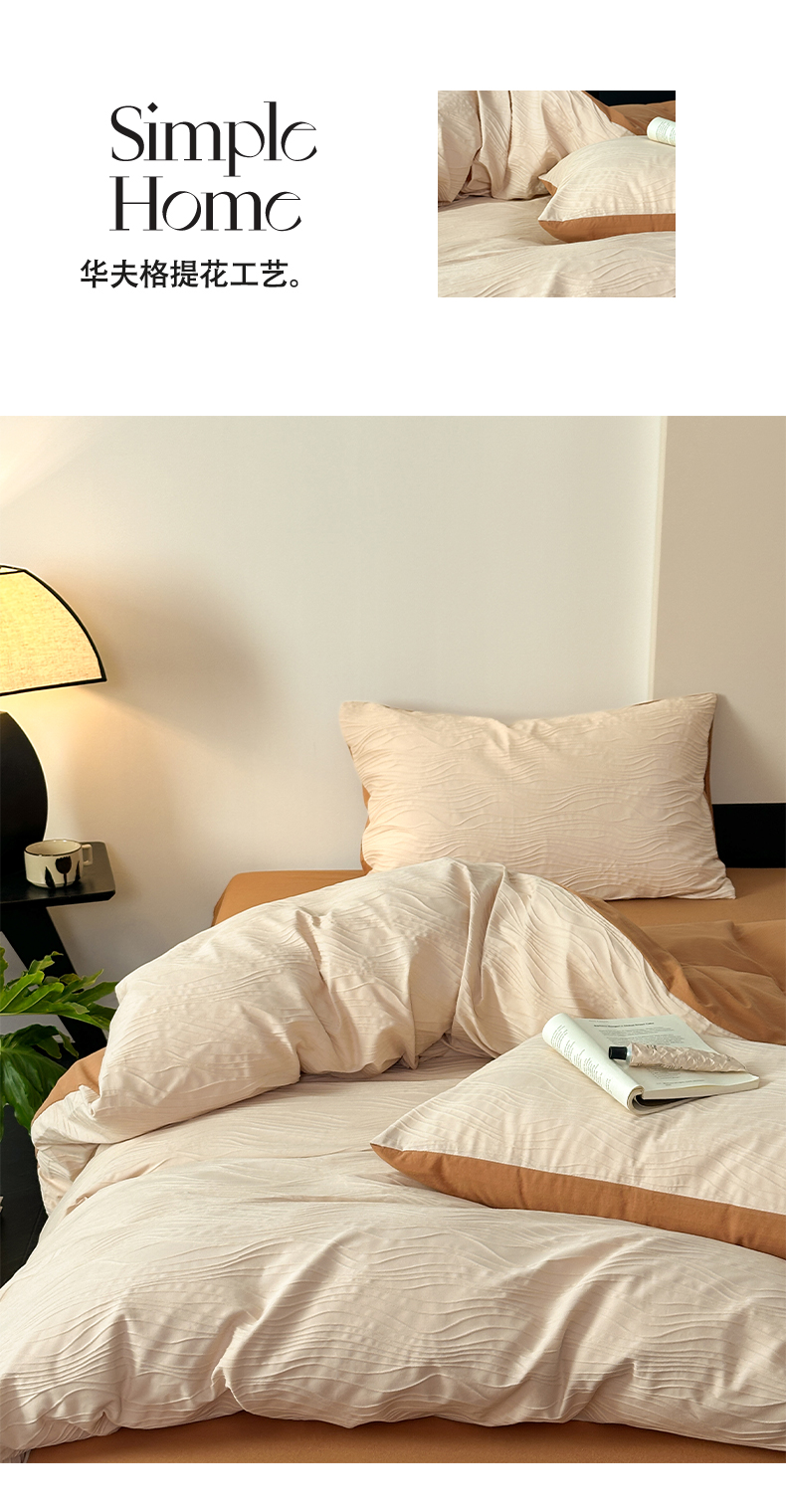 (总)雅居纺家纺 2022新款全棉华夫格普通款四件套,焦糖,米驼,奶油白,柔粉,深灰,雾蓝,月灰