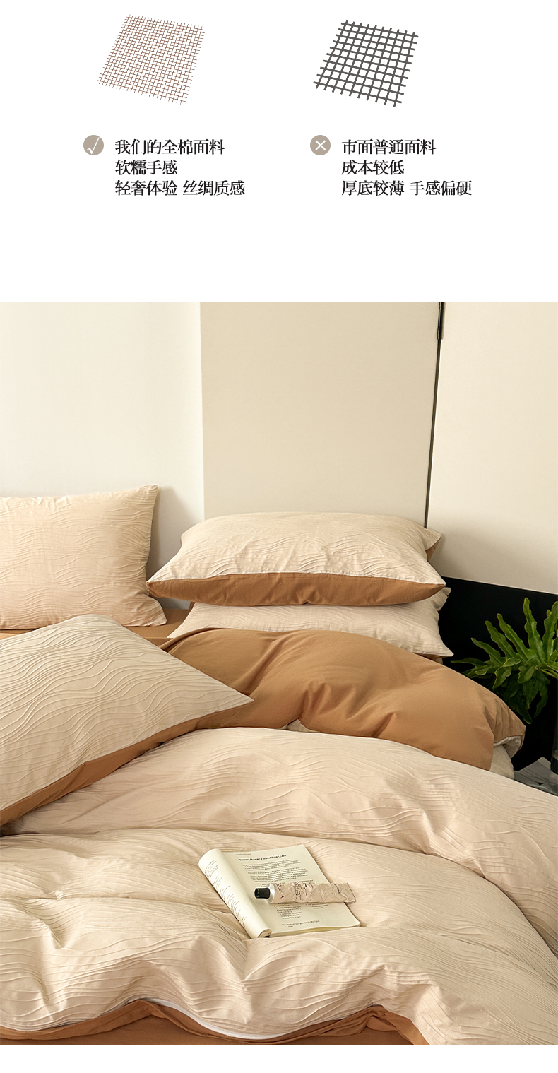 商品名称:雅居纺家纺 2024新款全棉线条提花四件套-线条 线条-焦糖