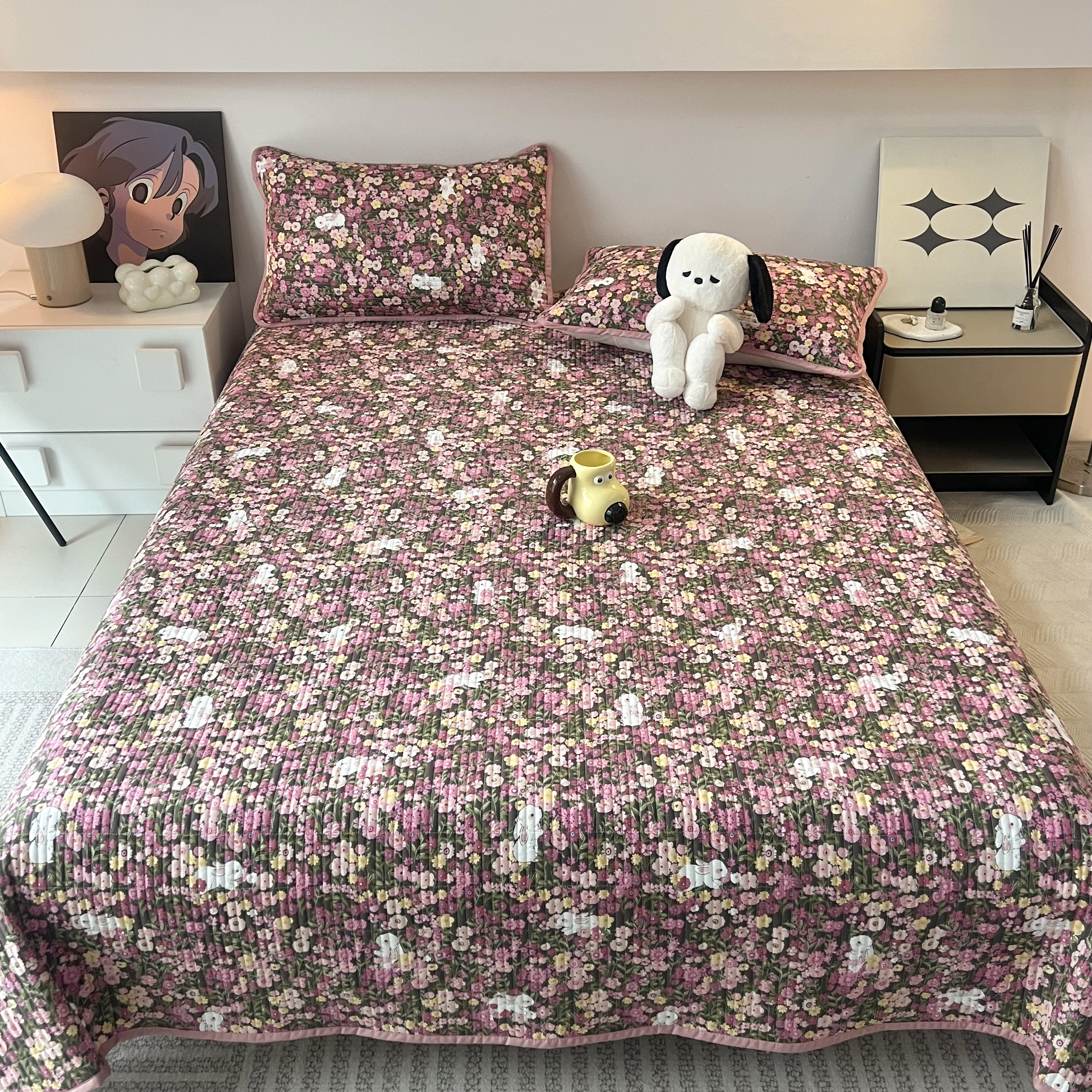 • 91家纺网 家纺一手货源 找家纺 HL原创 2024新款全棉印花床盖 玫瑰花园