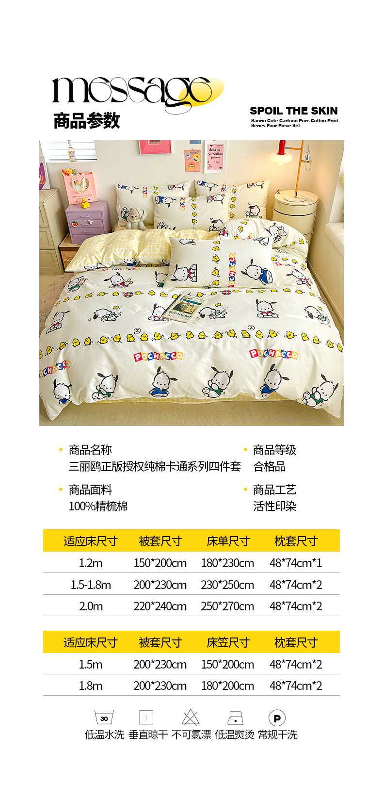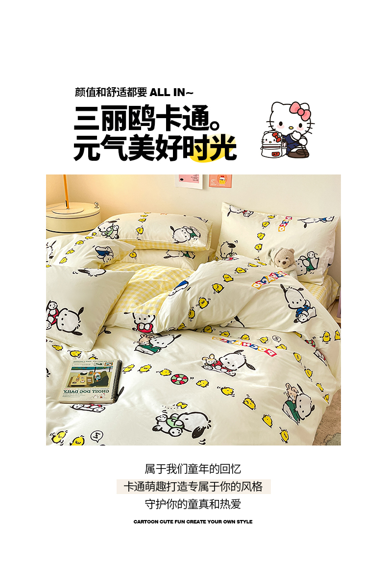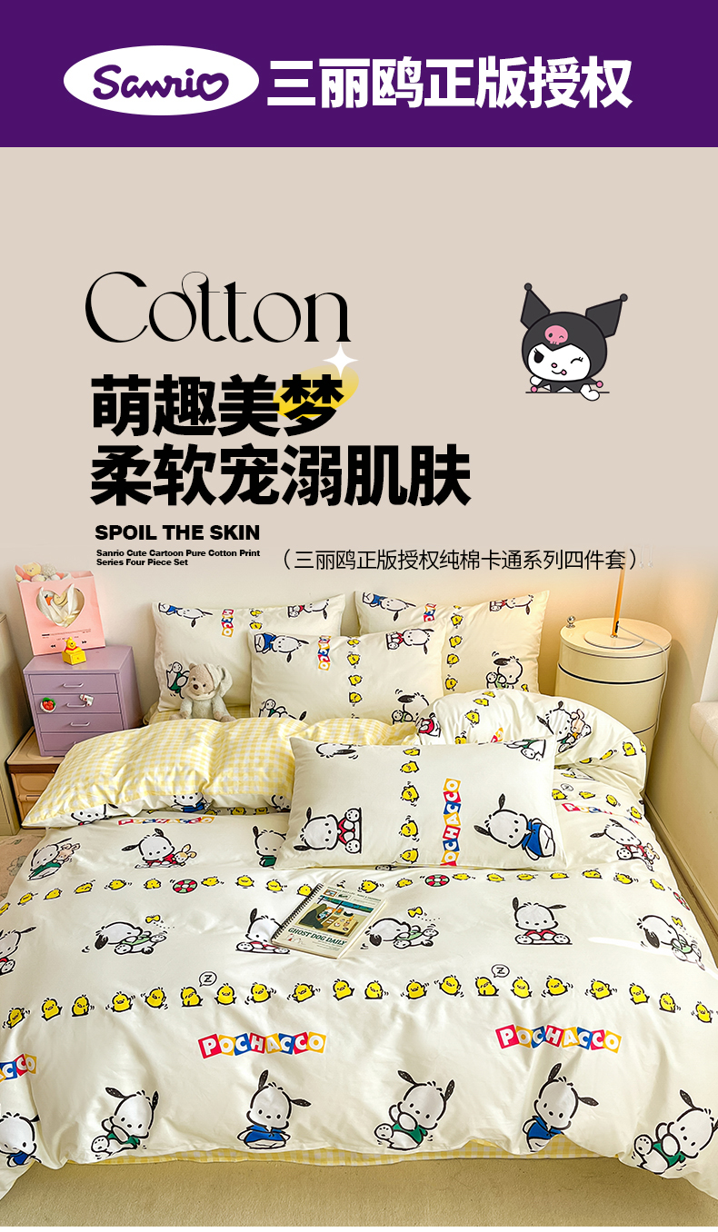 当前位置: 91家纺网 > 商品网购 > 床品套件 > 四件套 > 全棉普通四件套 > 桃子家居 2024新款三丽鸥正版授权全棉卡通系列四件套 棉三丽鸥-帕恰伙伴