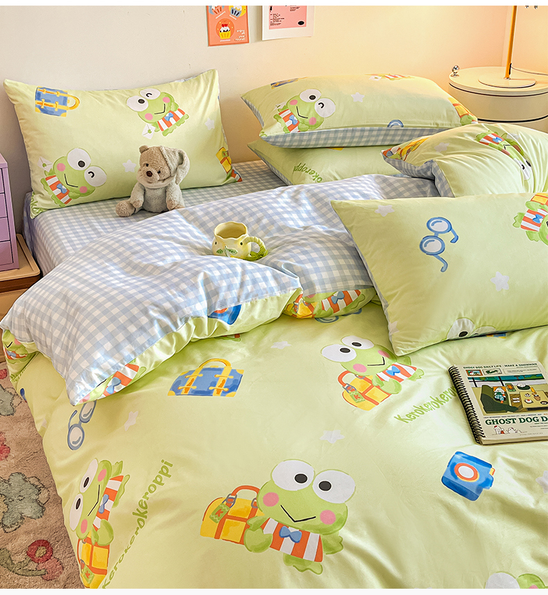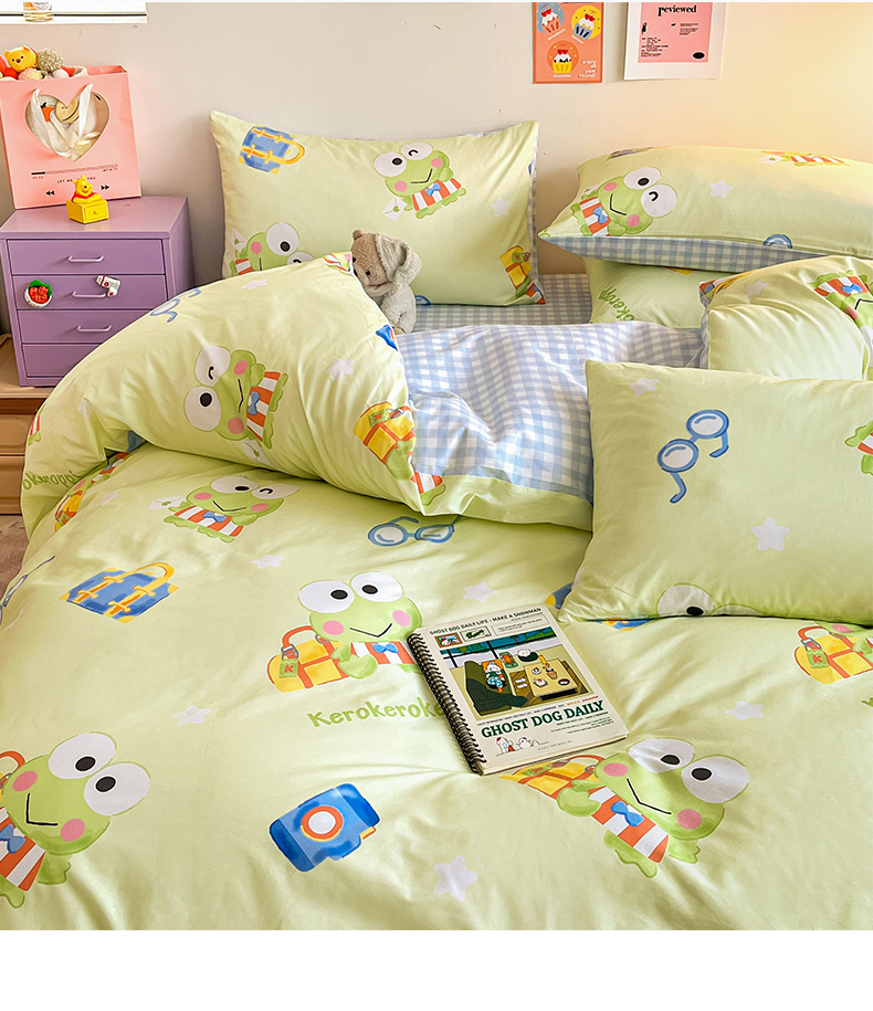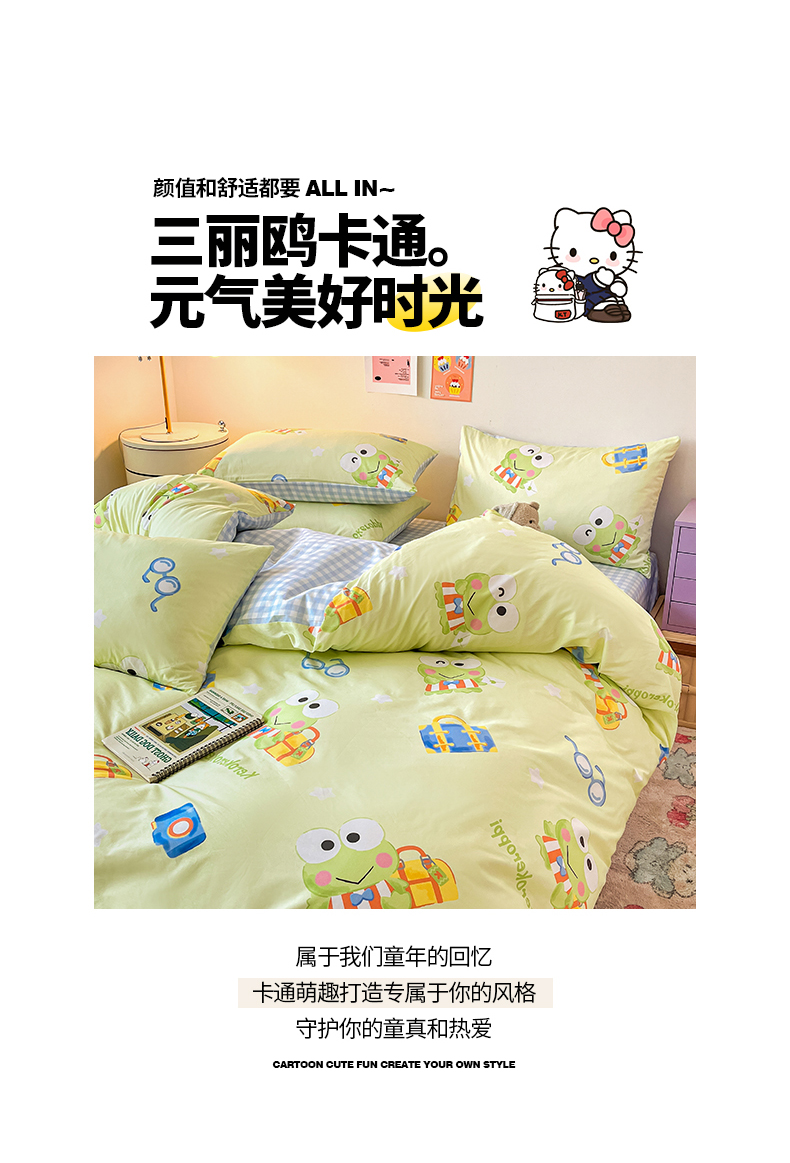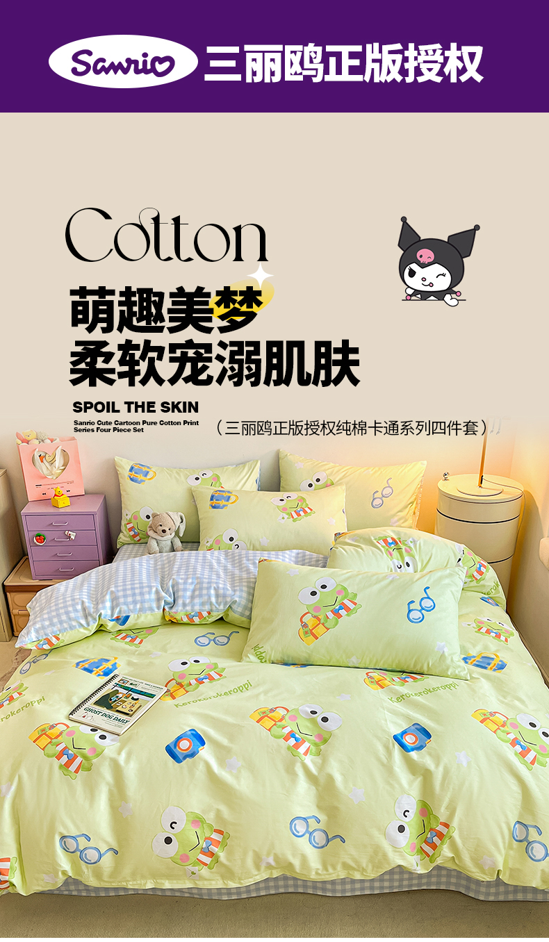 当前位置: 91家纺网 > 商品网购 > 床品套件 > 四件套 > 全棉普通四件套 > 桃子家居 2024新款三丽鸥正版授权全棉卡通系列四件套 棉三丽鸥-微笑大眼蛙