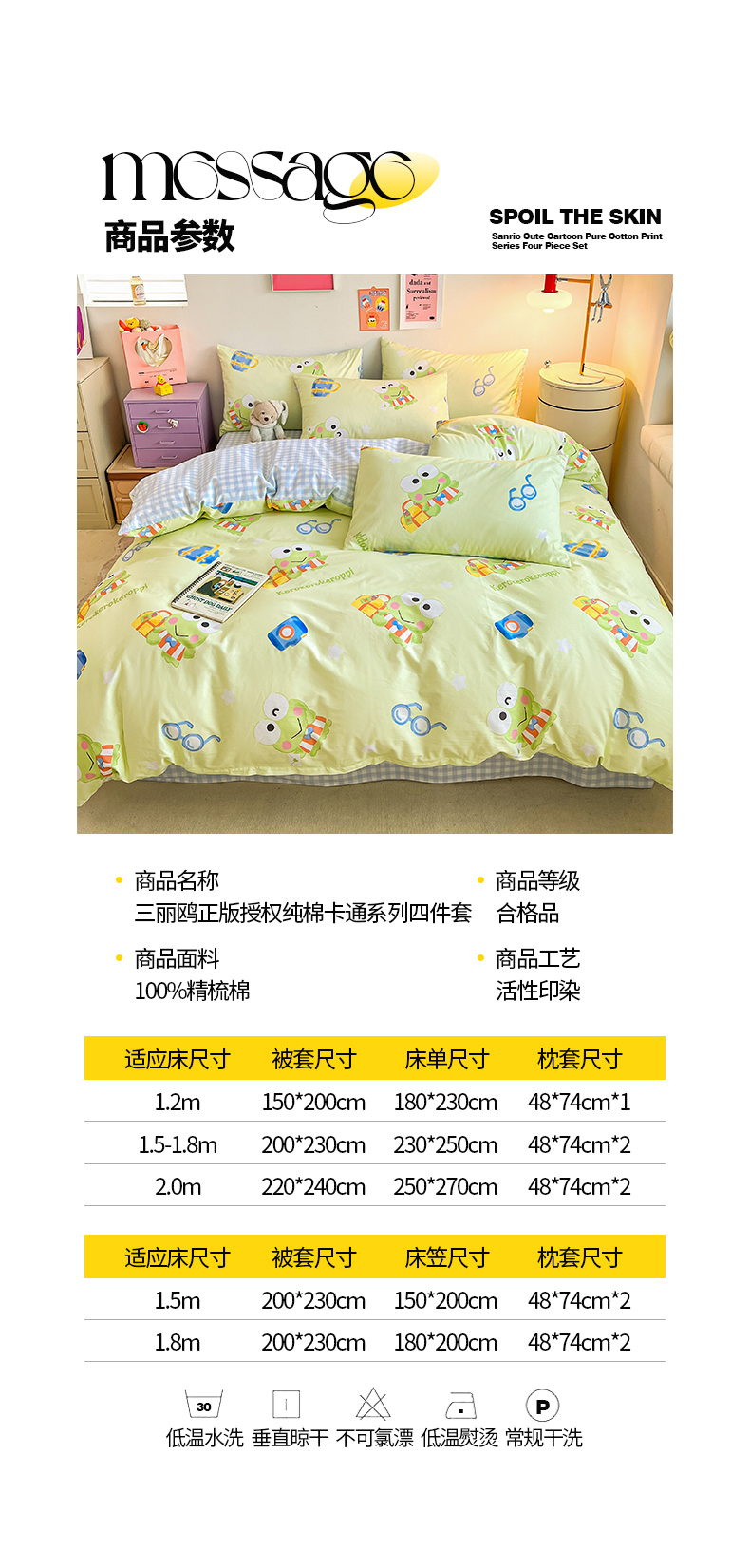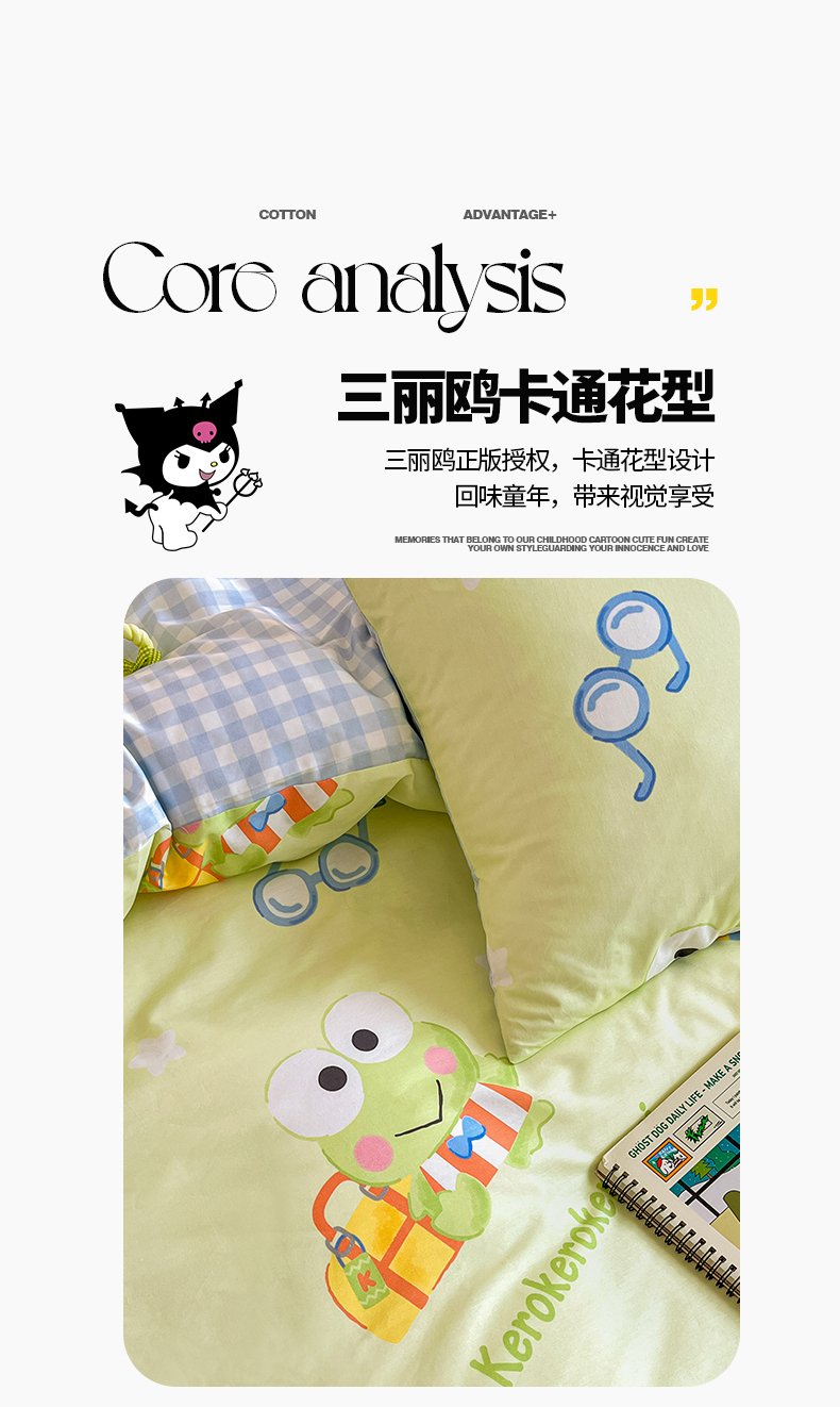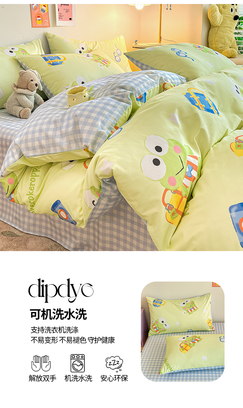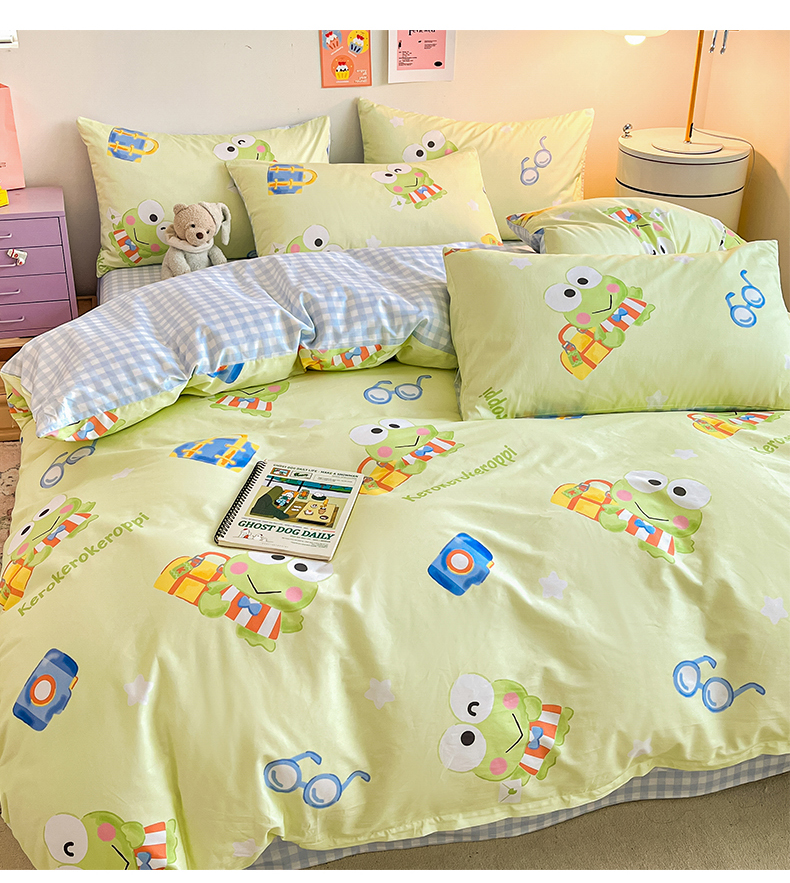当前位置: 91家纺网 > 商品网购 > 床品套件 > 四件套 > 全棉普通四件套 > 桃子家居 2024新款三丽鸥正版授权全棉卡通系列四件套 棉三丽鸥-微笑大眼蛙