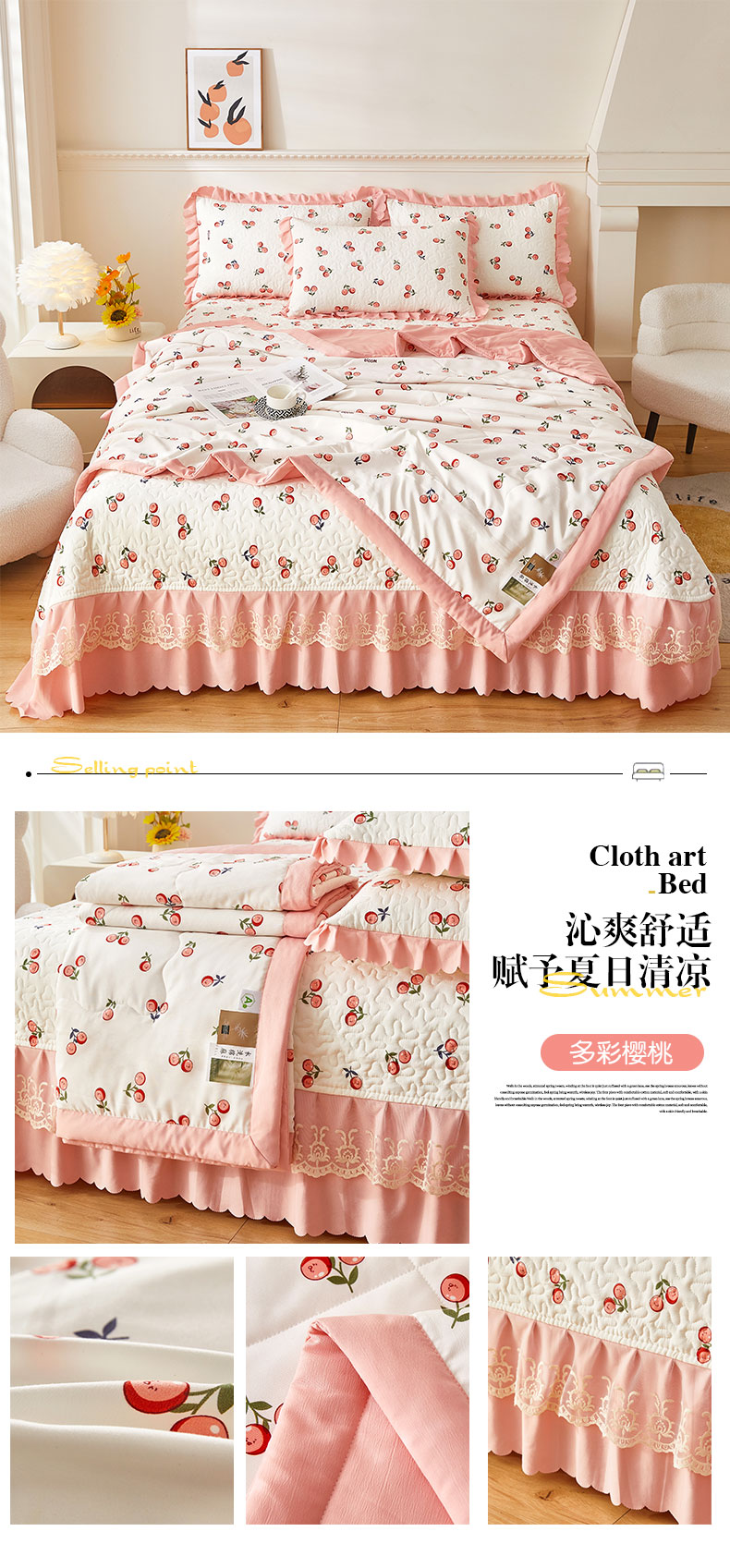 商品名称:美之润家纺 2026新款床盖款夏被四件套 多彩樱桃