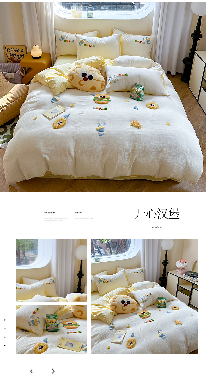 (总)眠屿家纺 2025新款全棉秋冬磨毛贴布绣四件套,爱心猫咪,蛋糕狗狗,可爱玩偶,热量100%