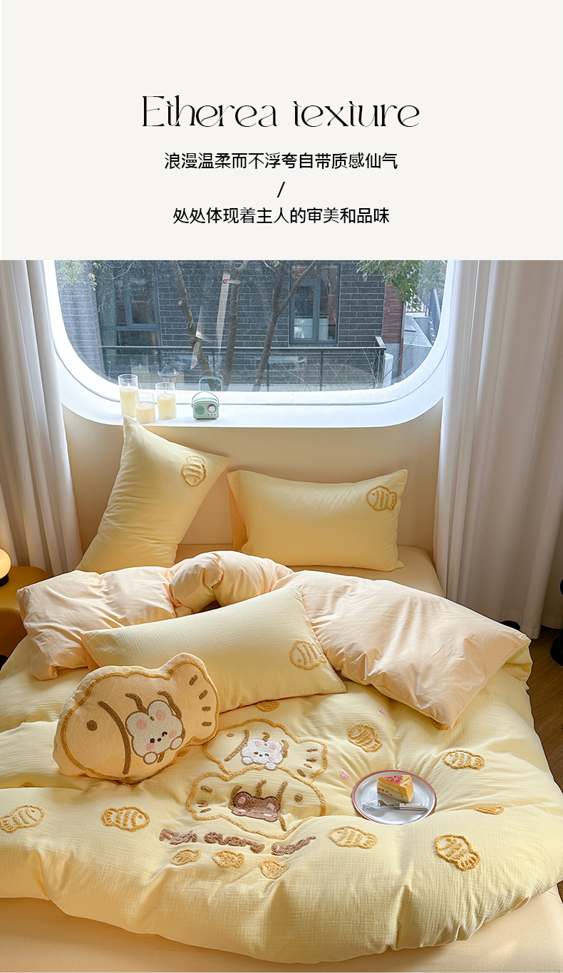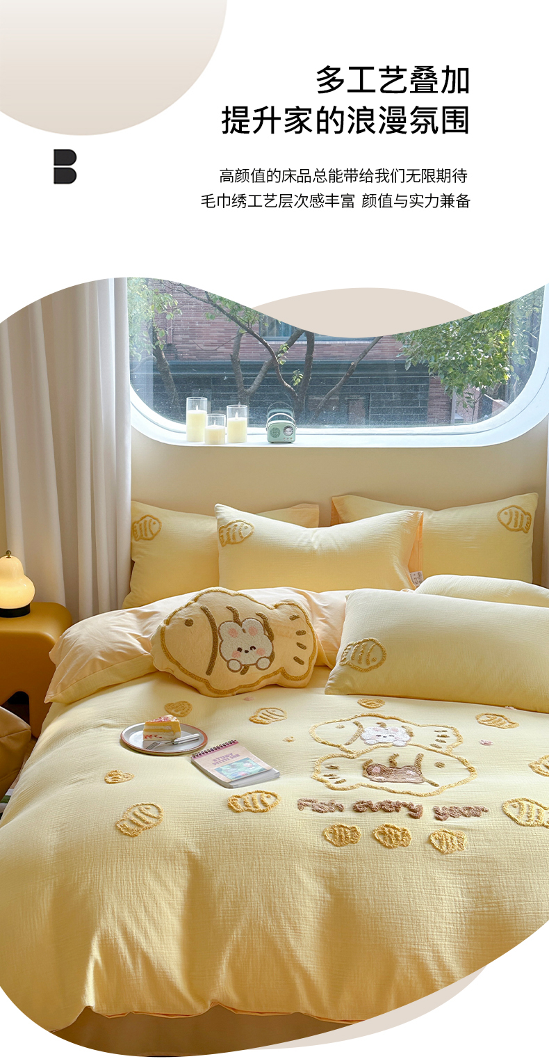 商品名称:(总)眠屿 2024全棉A类皱皱纱毛巾绣四件套