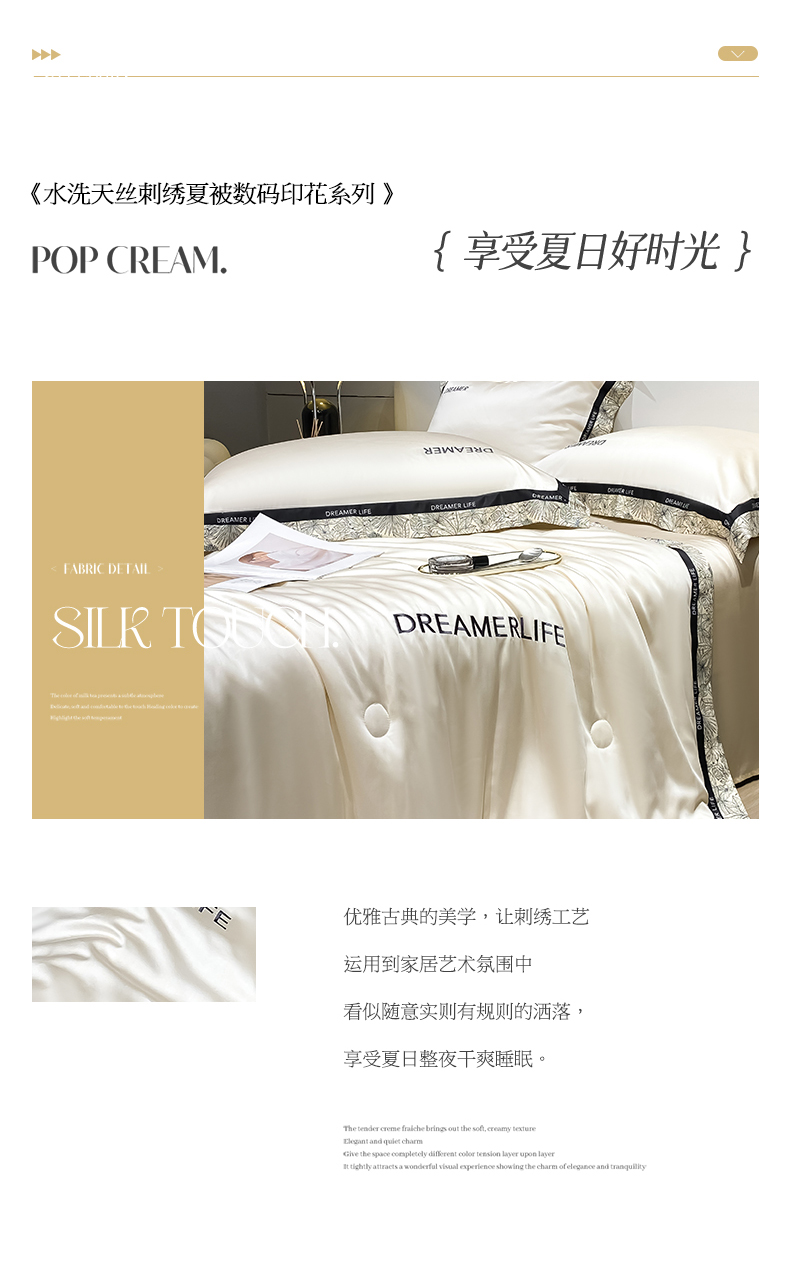 • 91家纺网 家纺一手货源 找家纺 眷恋家纺 2024新款水洗真丝冰丝宽边刺绣夏被三件套四件套-克里斯汀系列 克里斯汀-奶昔白+奶茶