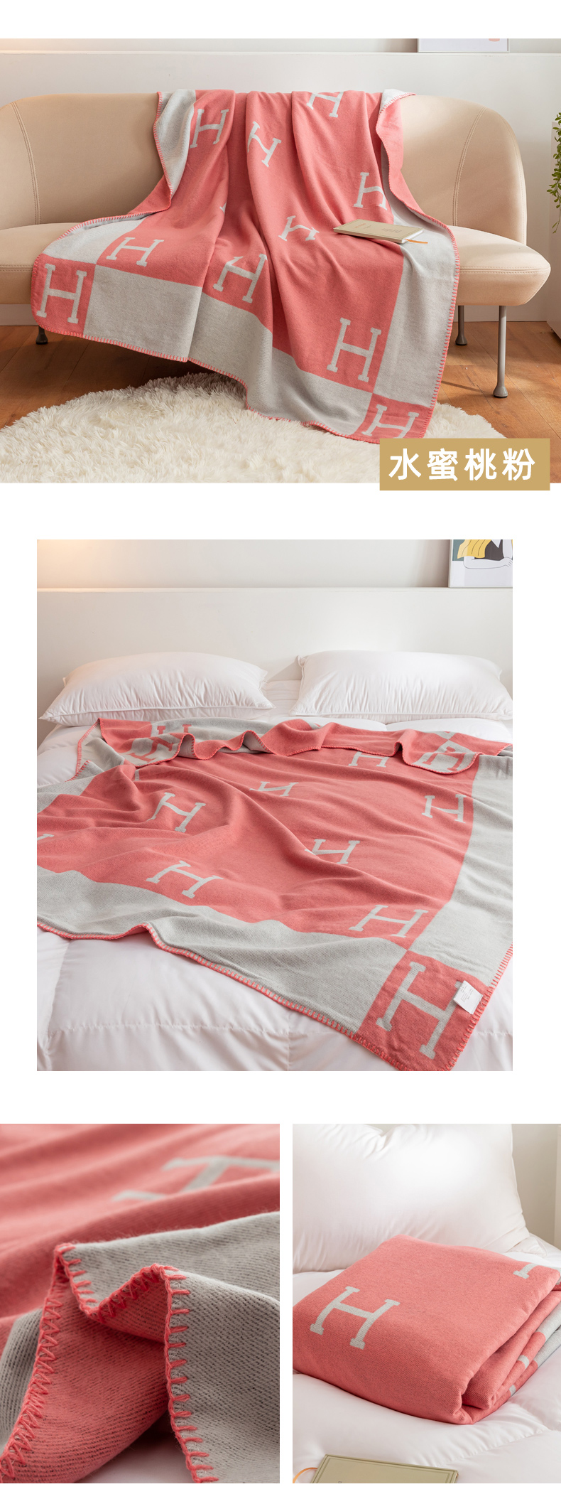 商品名称:(总)朴尔家纺-毛巾被 2024新款国际时尚风防羊毛手工缝制针织毯