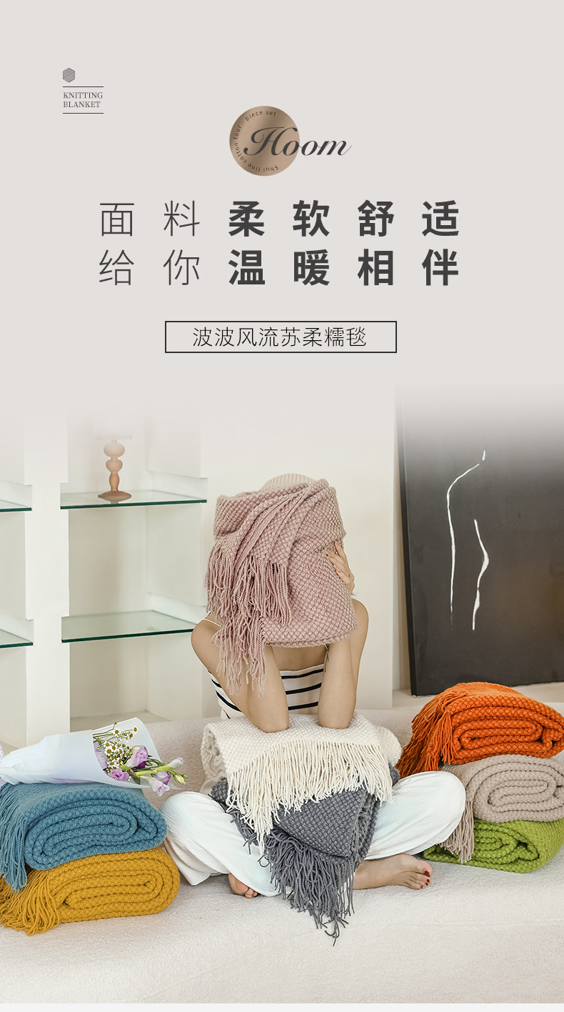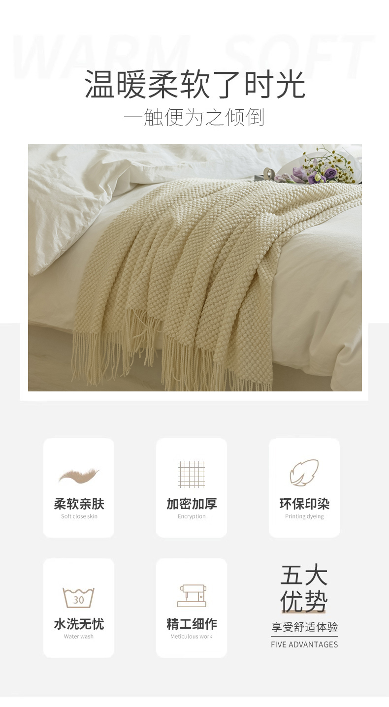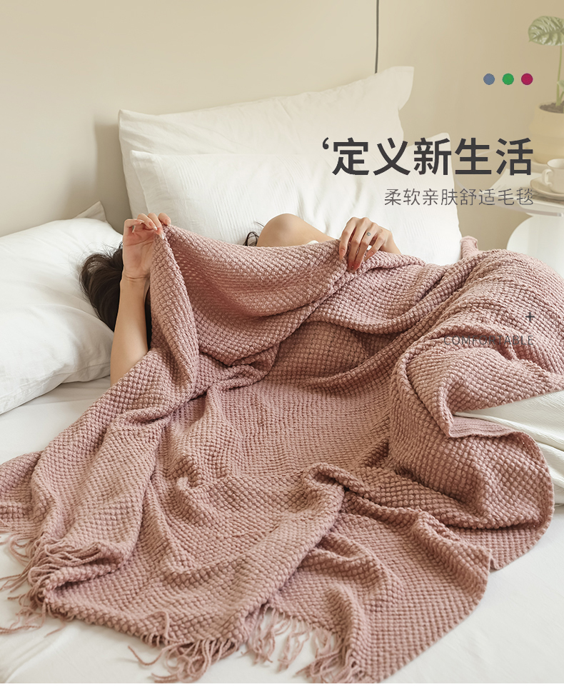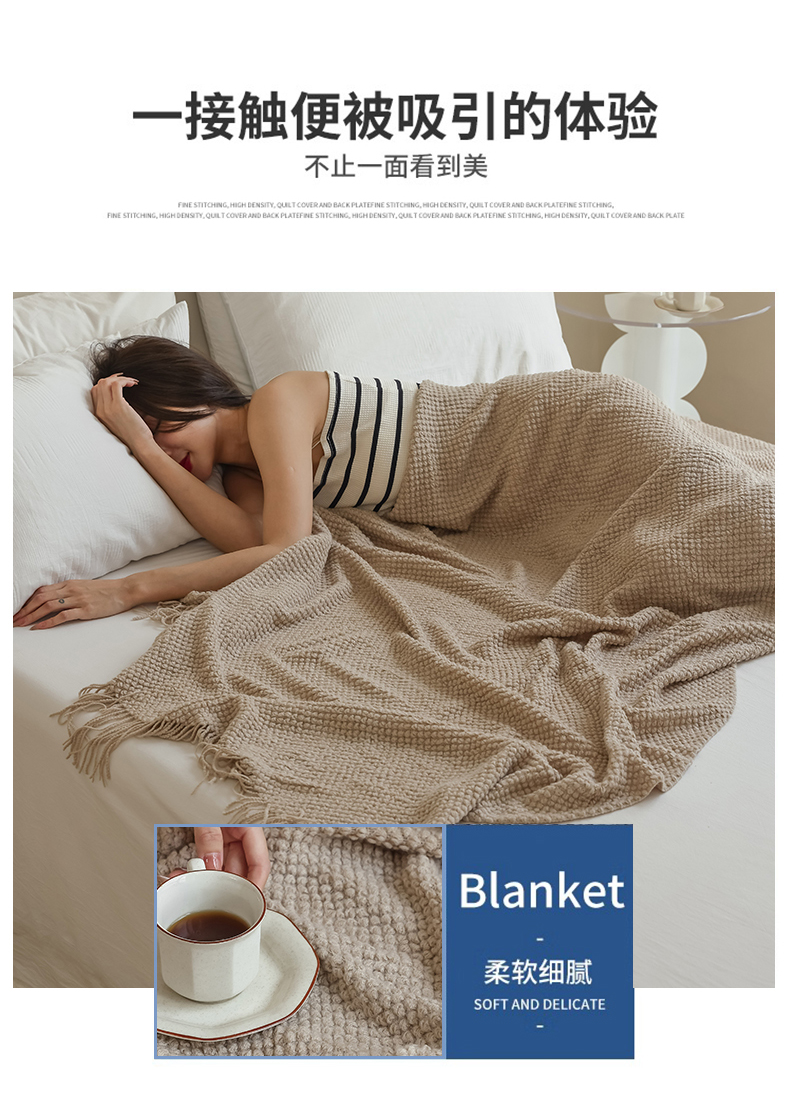 商品名称:(总)朴尔家纺-毛巾被 2024年新款波波风流苏柔糯毯床尾毯沙发巾