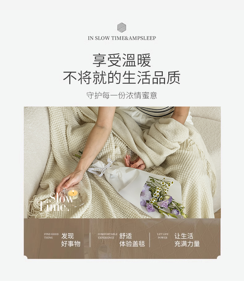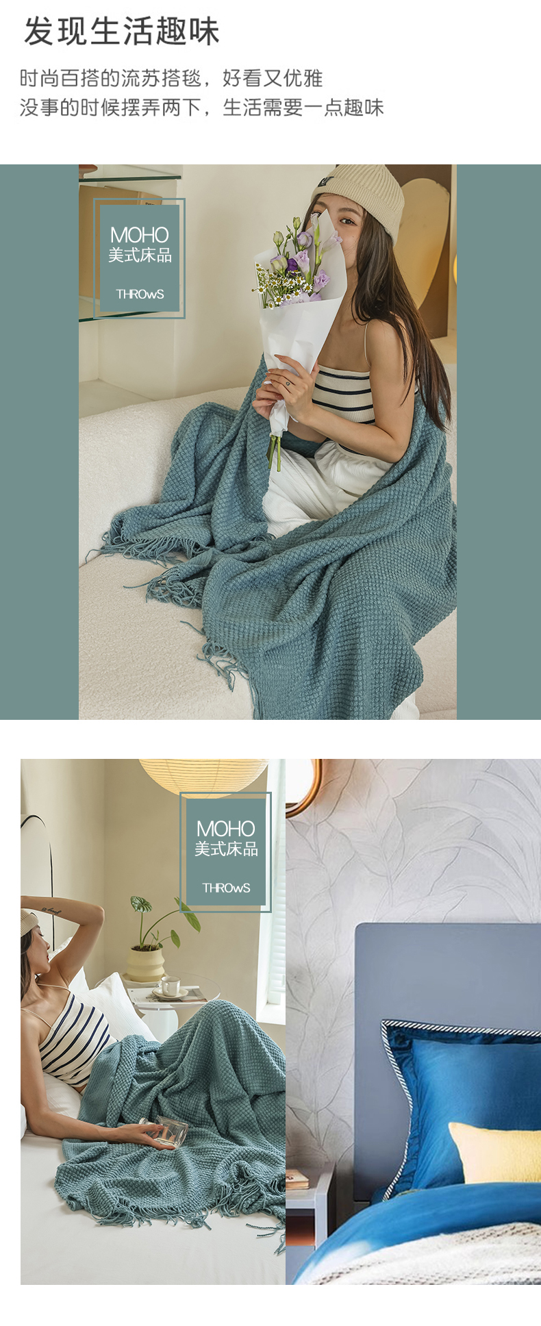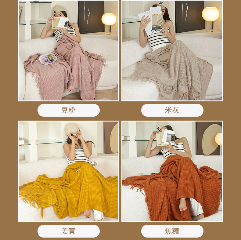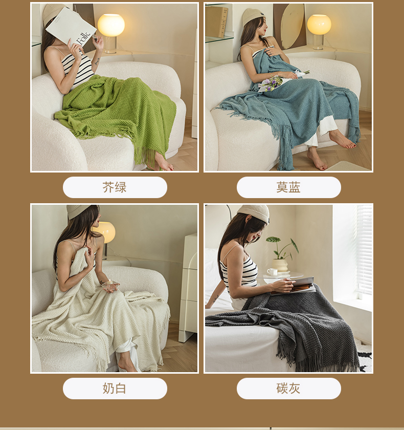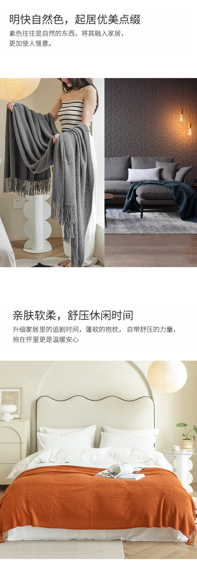 商品名称:(总)朴尔家纺-毛巾被 2024年新款波波风流苏柔糯毯床尾毯沙发巾