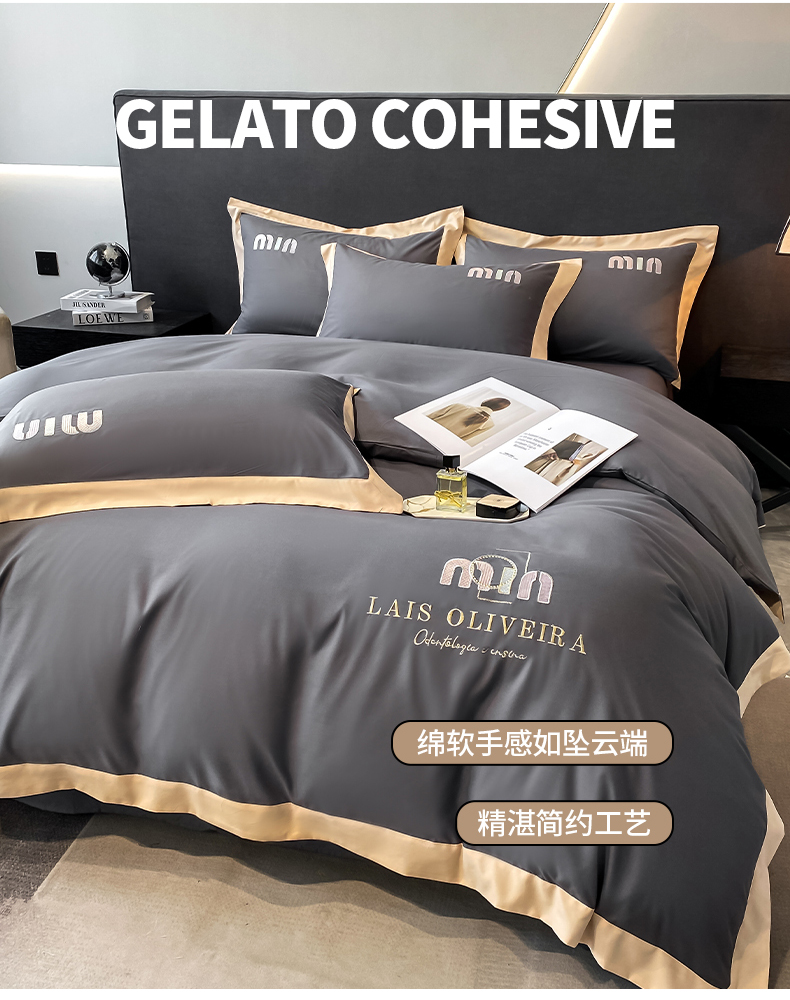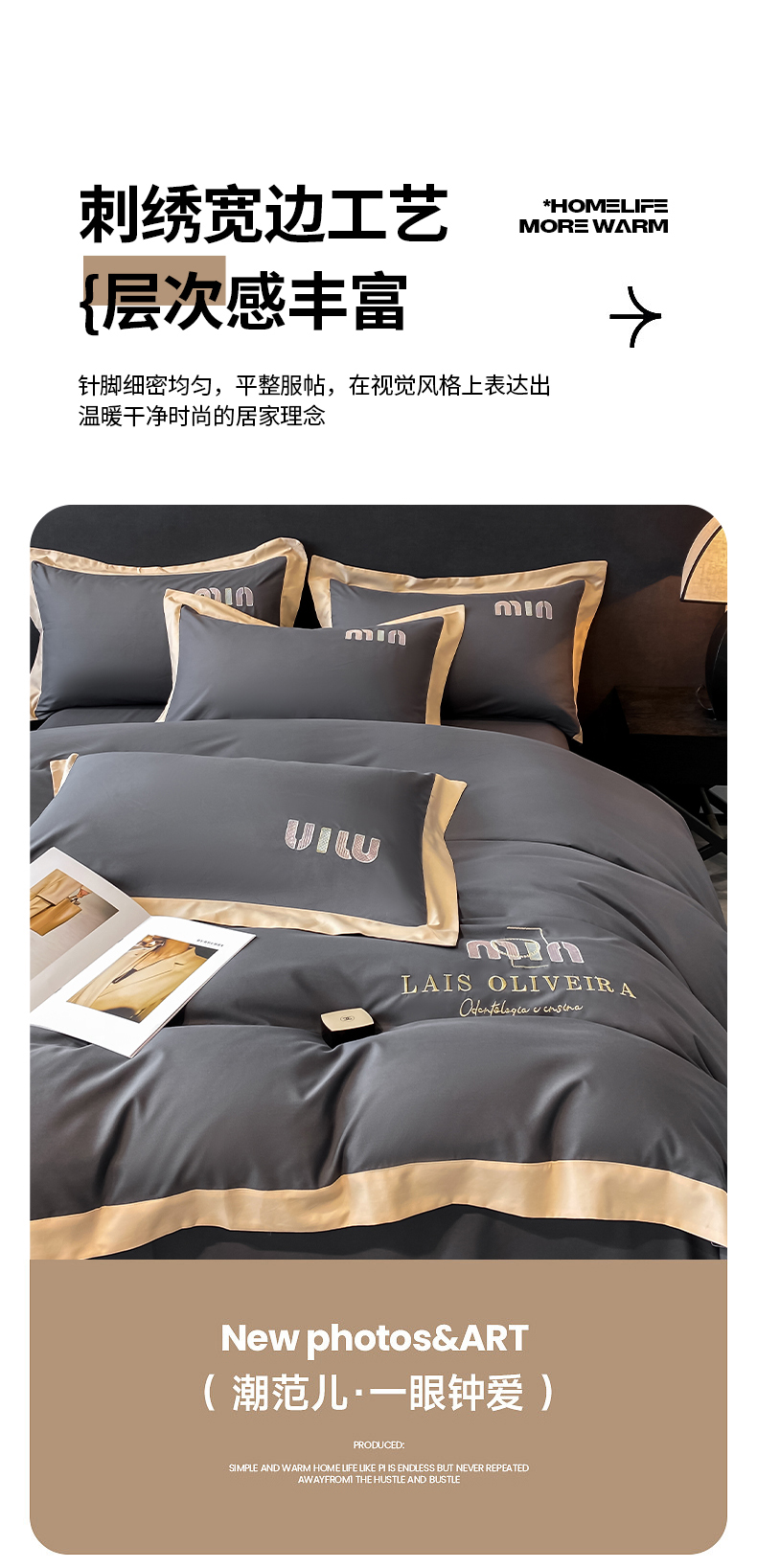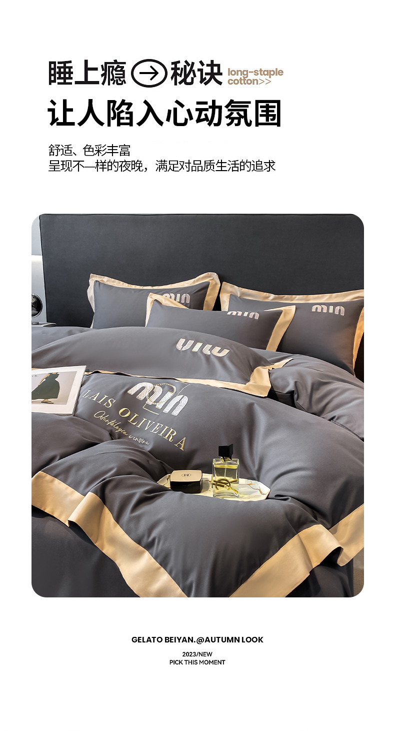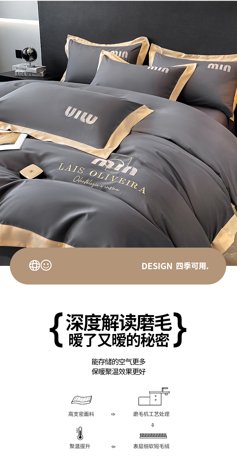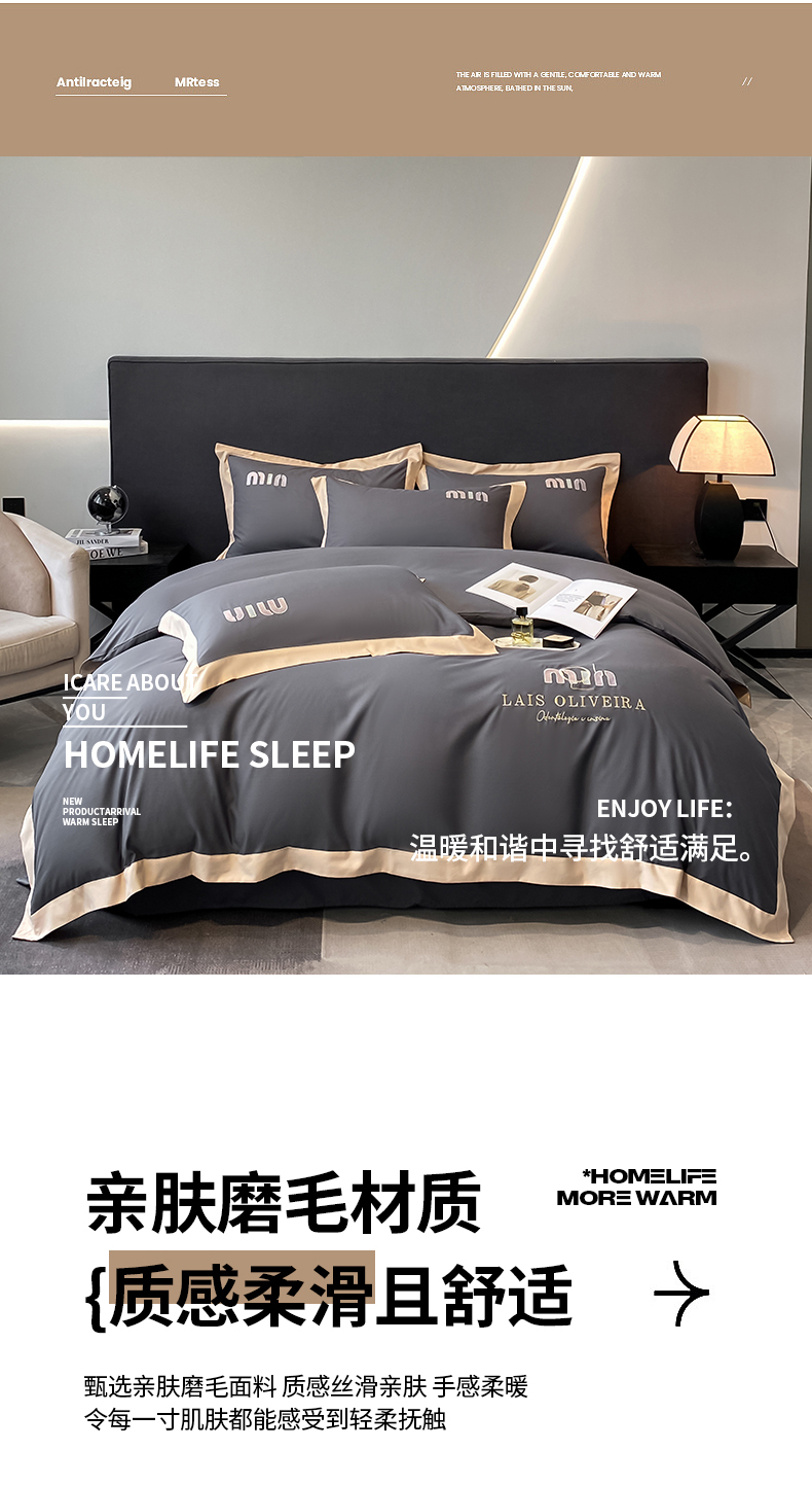 (总)遇见家居生活馆 2025新款A类牛奶绒玛利亚绒宽边四件套(控价:标准178,加大188,床笠款183),靓粉+星辰灰,丁香紫+星辰灰,清澈蓝+星辰灰,奶昔白+亚麻驼,经典灰+香槟,宾利蓝+星辰灰