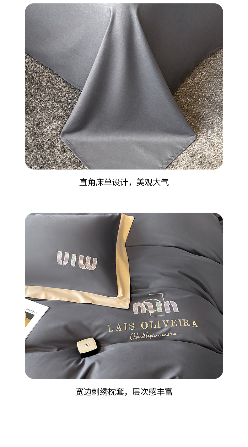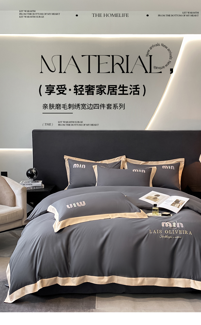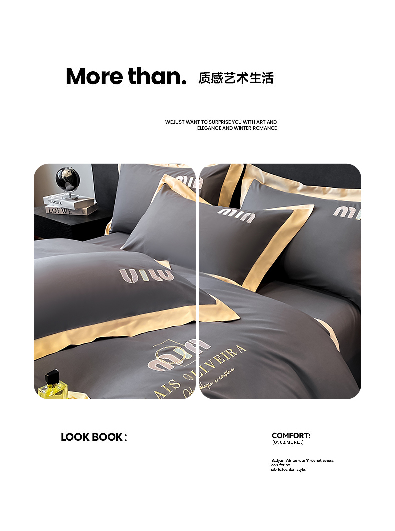 遇见家居生活馆 2024新款亲肤磨毛刺绣四件套-克洛伊 克洛伊-高级灰
