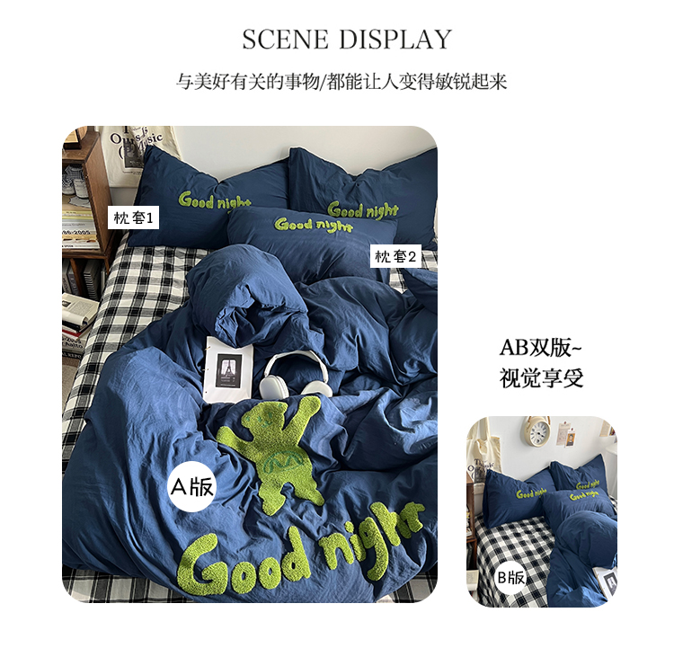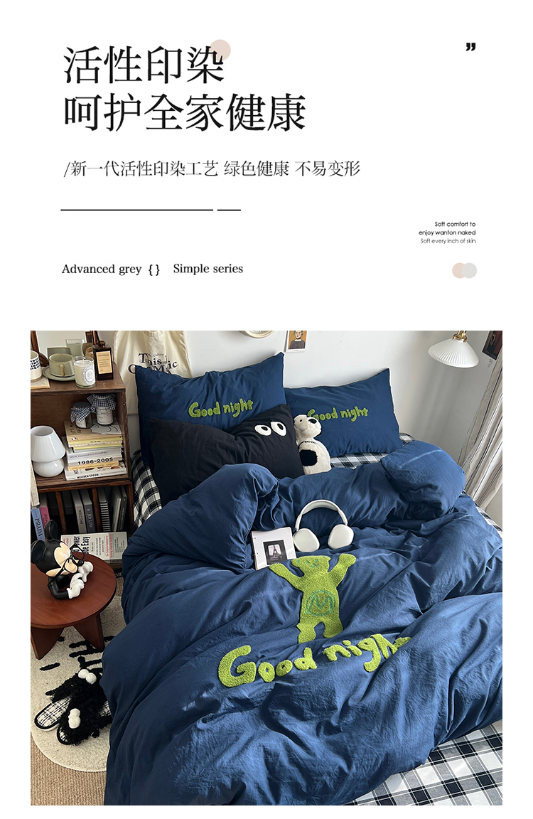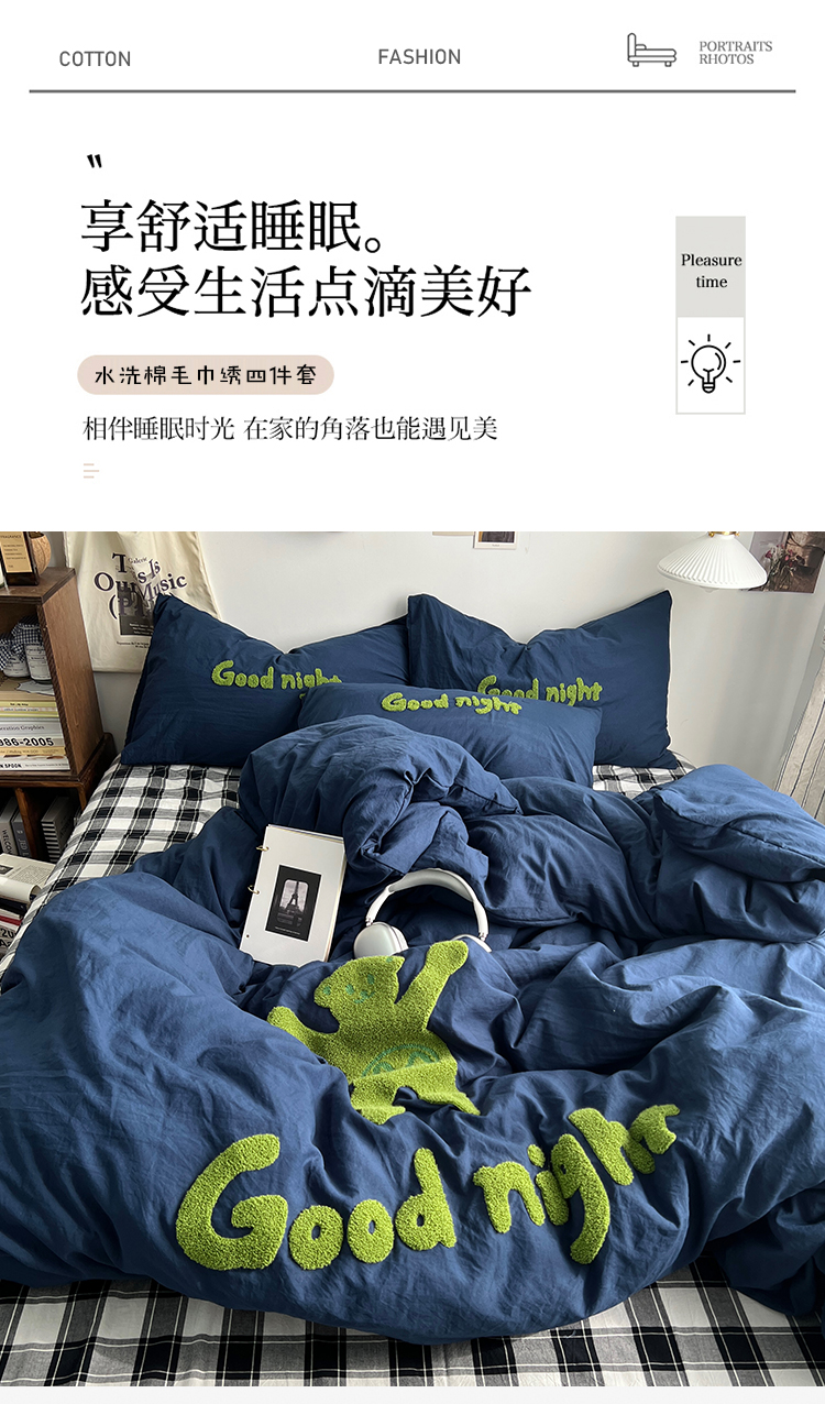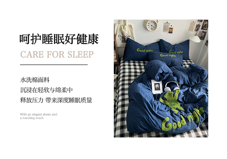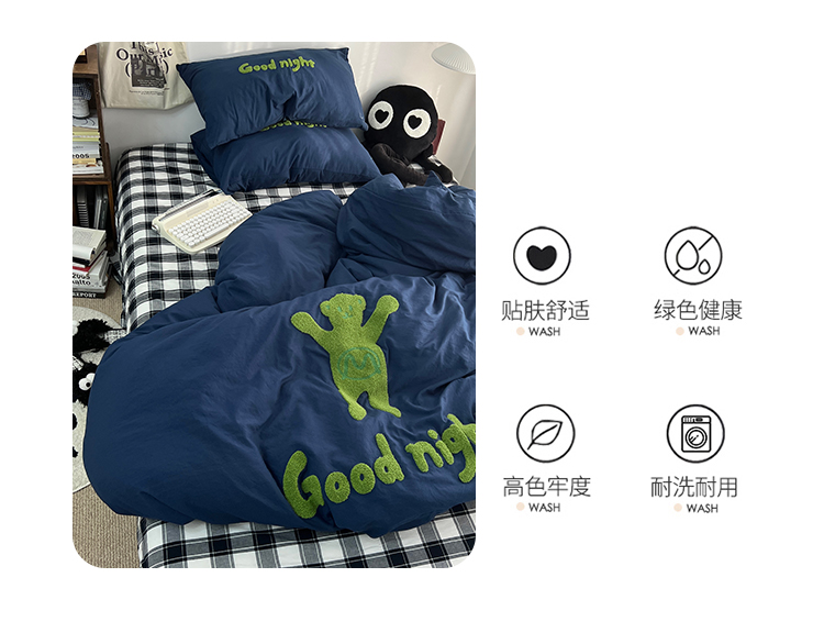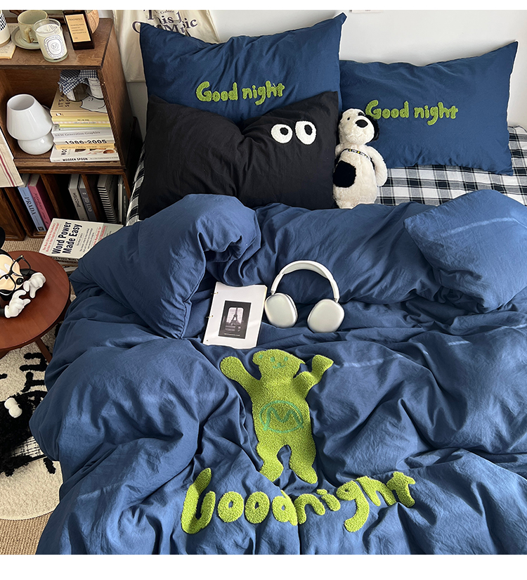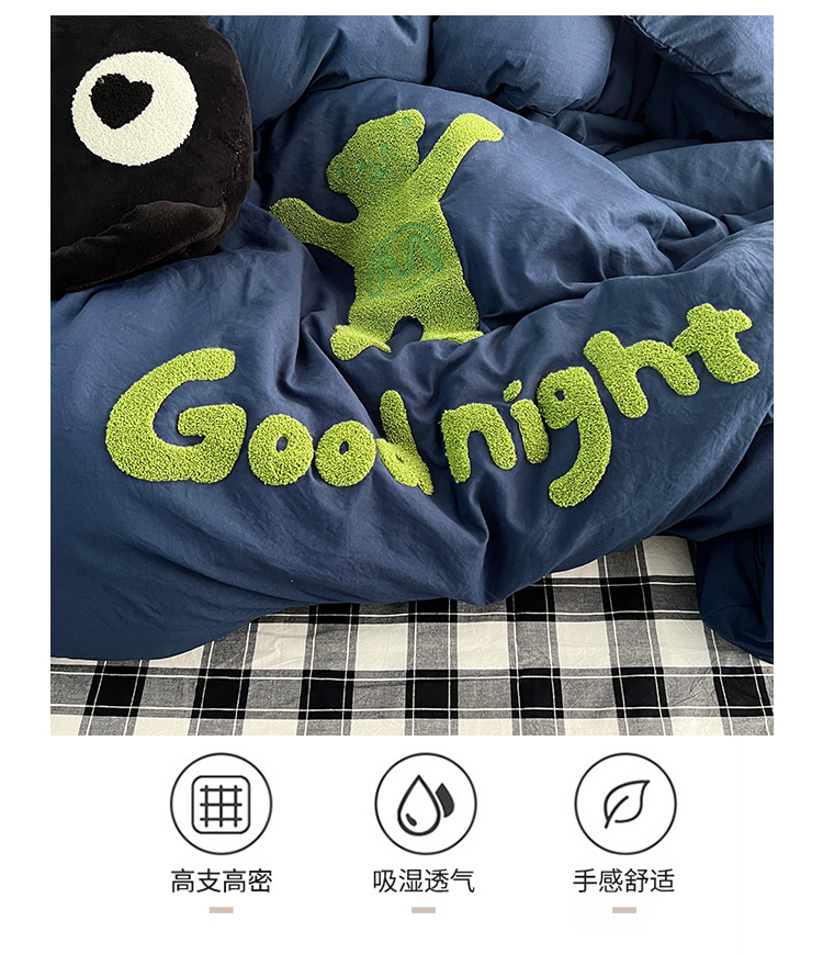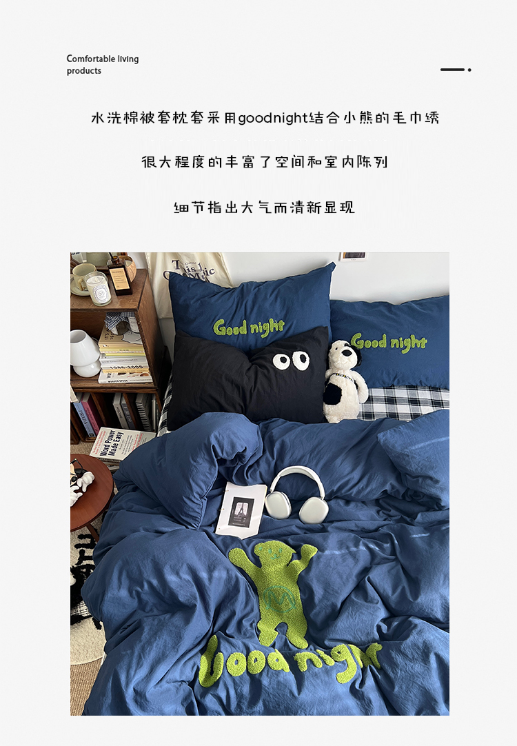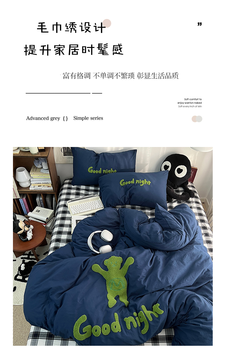 当前位置: 91家纺网 > 商品网购 > 床品套件 > 四件套 > 毛巾绣四件套 > 原素2024潮牌同款小熊大版毛巾绣四件套 Good night熊蓝格