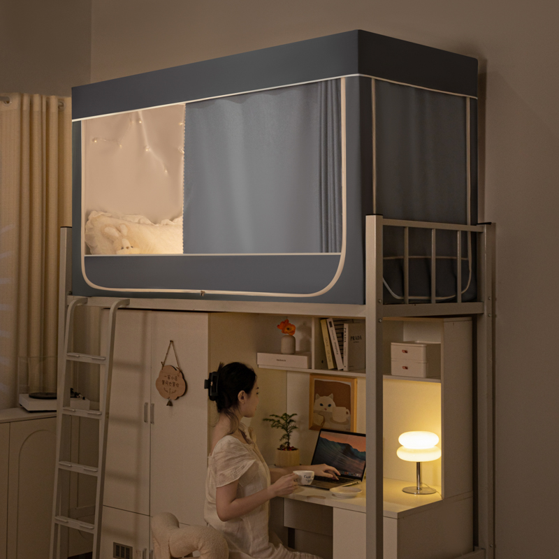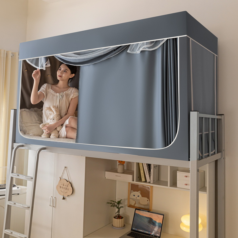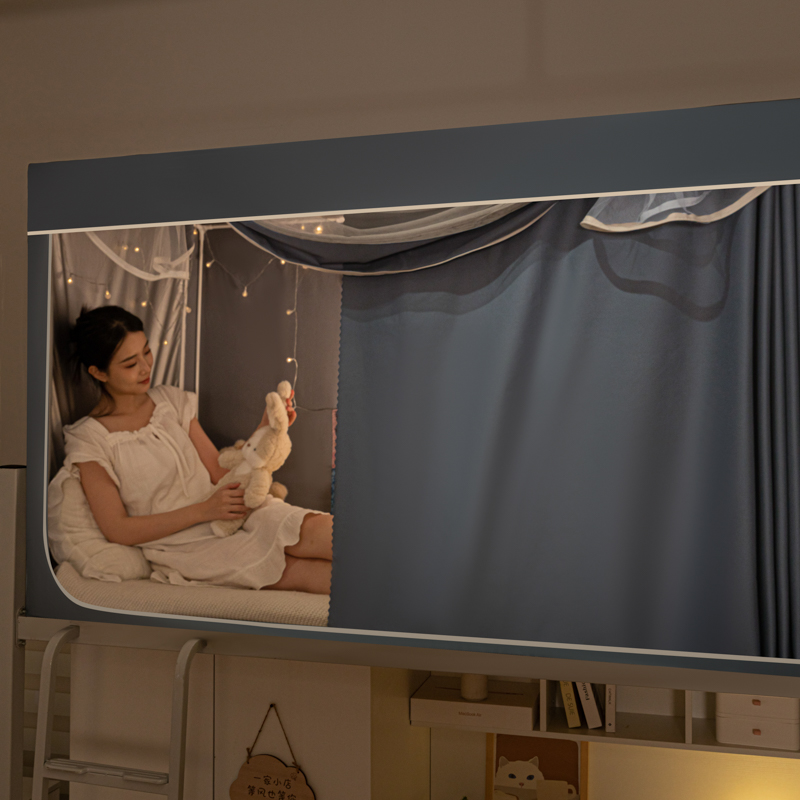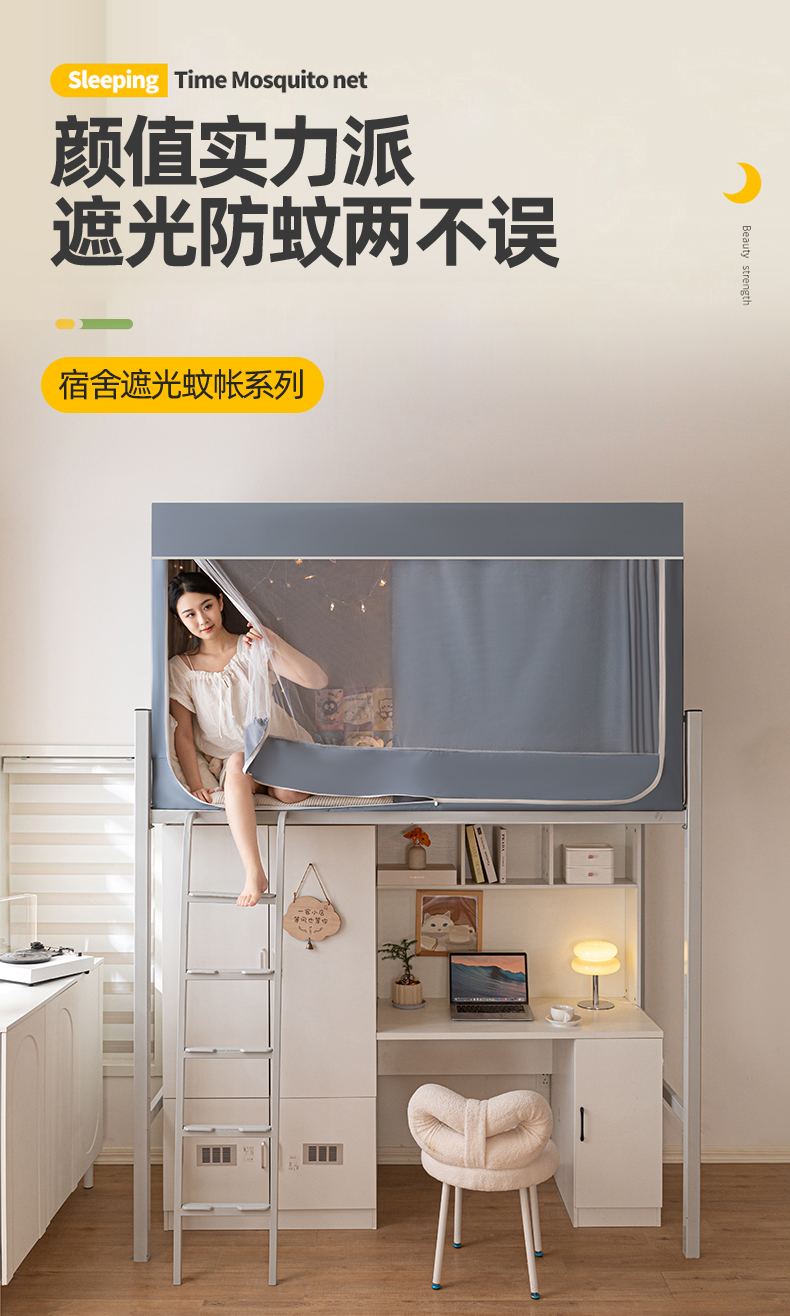 商品名称:博诺 2024新款99%加厚涂银层遮光卡通学生蚊帐 雾霾蓝