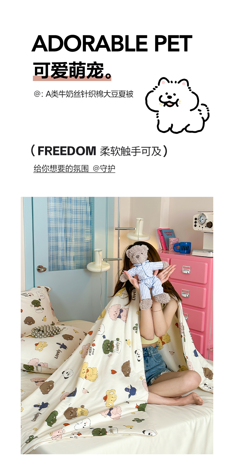 商品名称:一加一 2025新款A类牛奶丝针织棉大豆夏被 宠物小狗