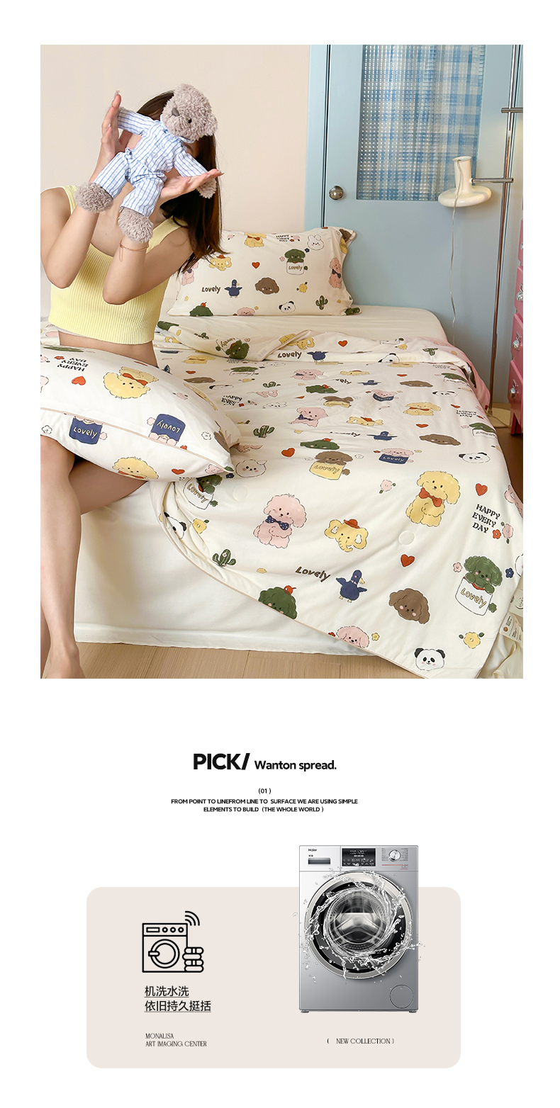 (总)一加一 2025新款全棉双层皱皱纱毛巾绣抗菌大豆被芯,快乐狗,腊肠狗,甜甜小丸子,星愿树,熊猫派对