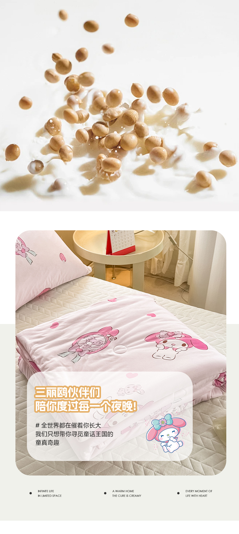 (总)沐辰 2025新款牛奶绒绣花三丽鸥系列四件套,酷酷库洛米,假日云朵狗,暖心凯蒂猫,骑行蛙蛙,气球美乐蒂,玩家帕恰狗