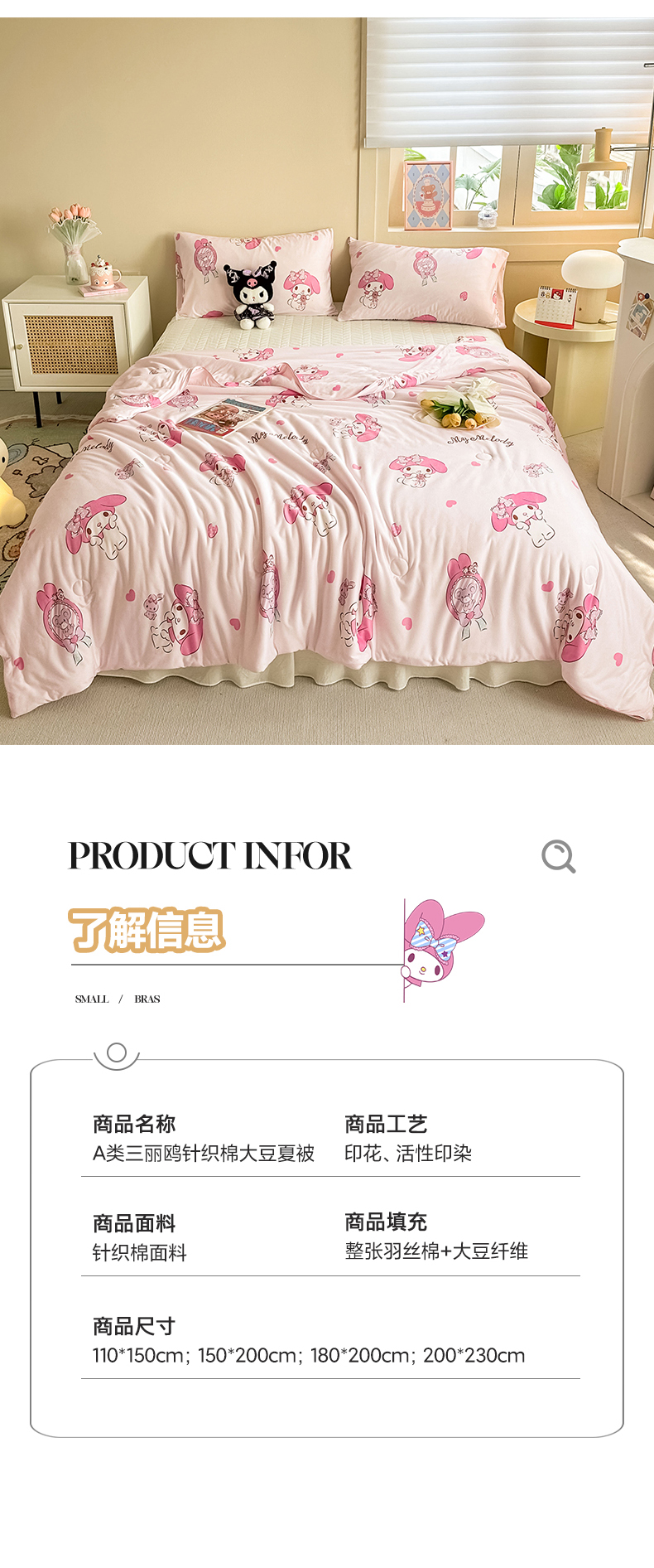 商品名称:沐辰 2024新款正版授权三丽鸥A类针织棉夏被 草莓美乐蒂