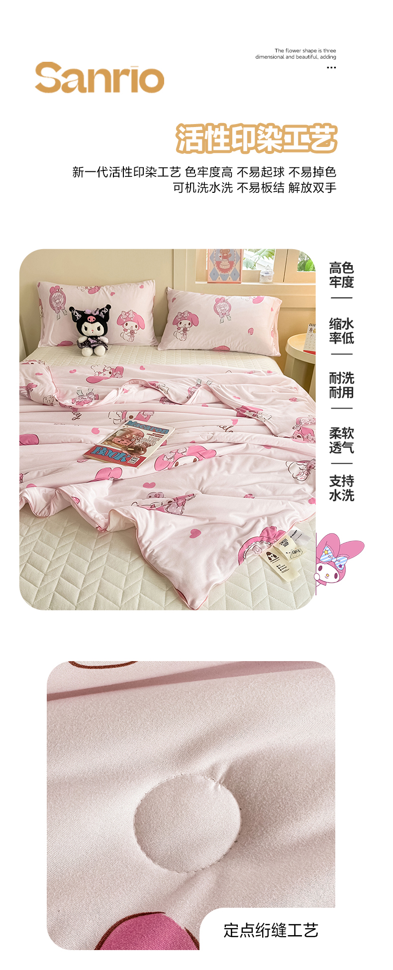 沐辰 2024新款正版授权三丽鸥A类针织棉夏被 草莓美乐蒂