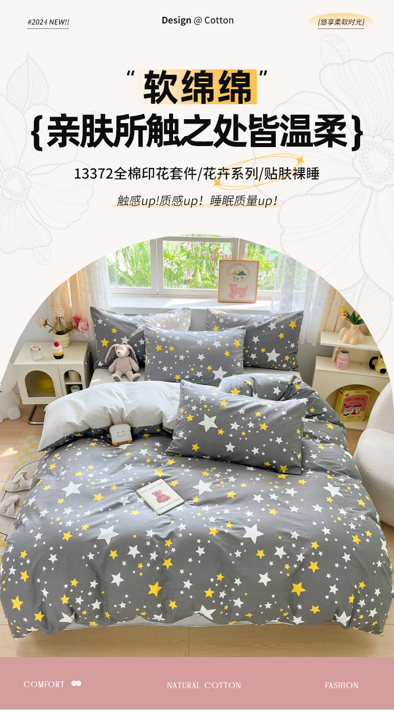 (总)芊寻家居 2024年新款全棉印花13372四件套,都市圈,红玫瑰,锦瑟,妙语花香,蘑菇兔,慕颜,优雅生活 灰,优雅生活 米,屋顶花园,秋硕,思恋白,思恋蓝,悉尼,夏恋,菲菲兔,赫本,简约,许愿兔,菲格拉,绽放,布鲁斯,方程式,极简生活,经典回味,米兰的春天,美杜莎,秋色宜人,泰迪熊,寻梦,印象派,画莓,交响曲