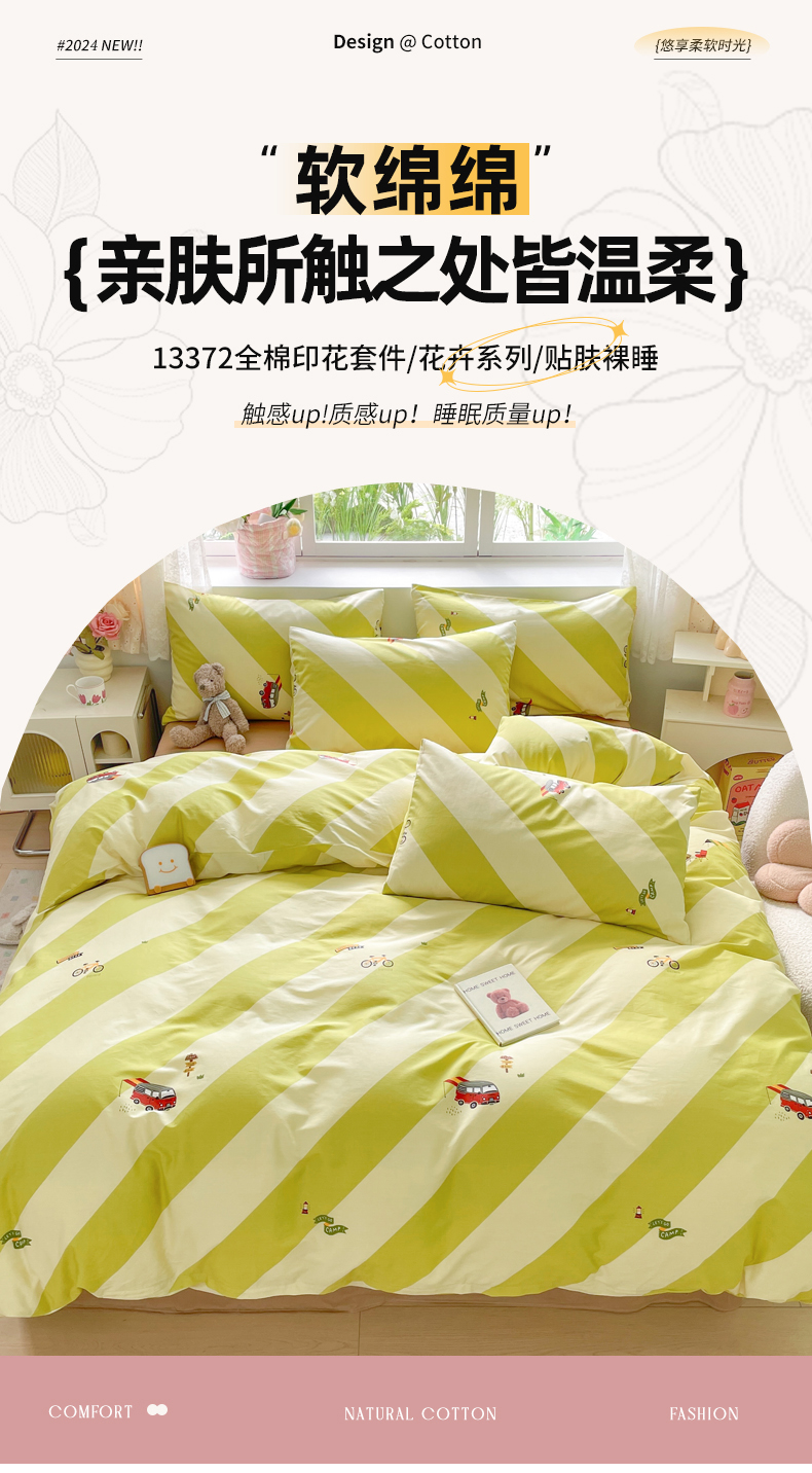 (总)芊寻家居 2025新款13372全棉印花系列四件套,柏拉图,草莓甜心,朵琦,广岛之恋,花丛 粉,幻蝶 粉,兰黛 绿,玫瑰情缘 粉,梦境女孩 米,茉莉清雨 紫,暮云 灰,青柠,如约,盛夏,小时代,小熊日记 棕,雅姿,芷若
