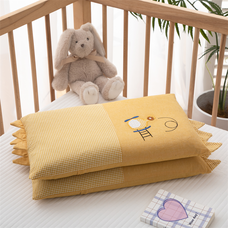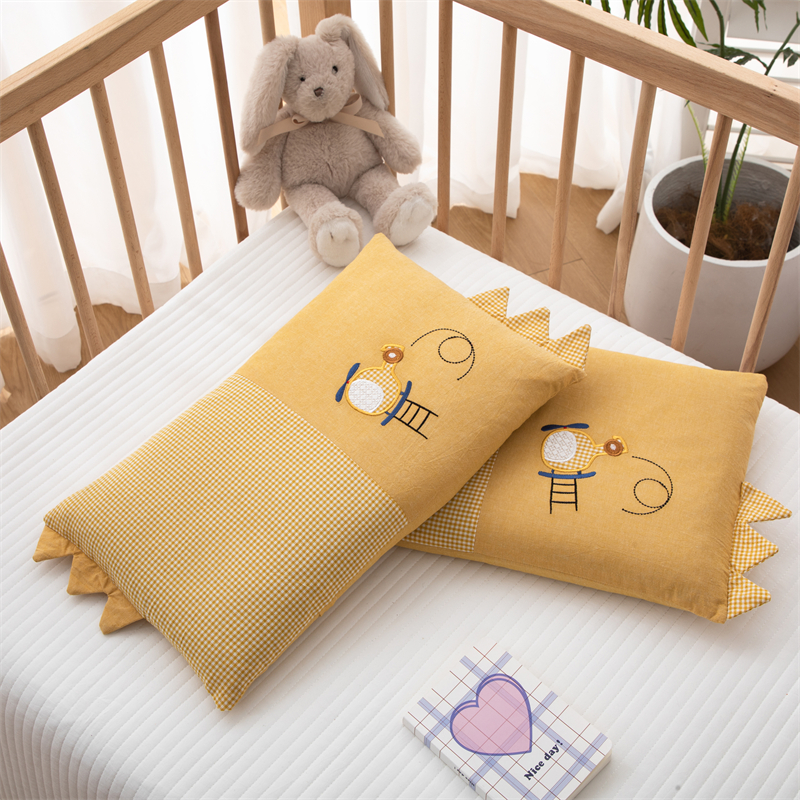 • 91家纺网 家纺一手货源 找家纺 织布人 2024新款枕芯全棉水洗棉婴幼儿童枕0-6-12岁卡通贴布绣枕套+枕芯 萌趣小花边-直升机