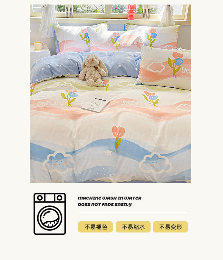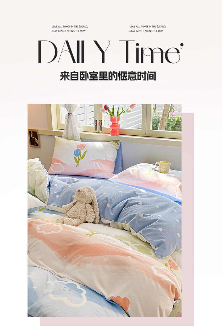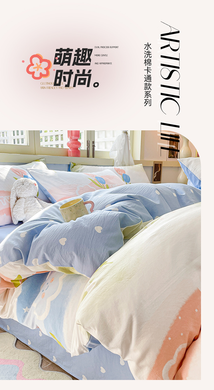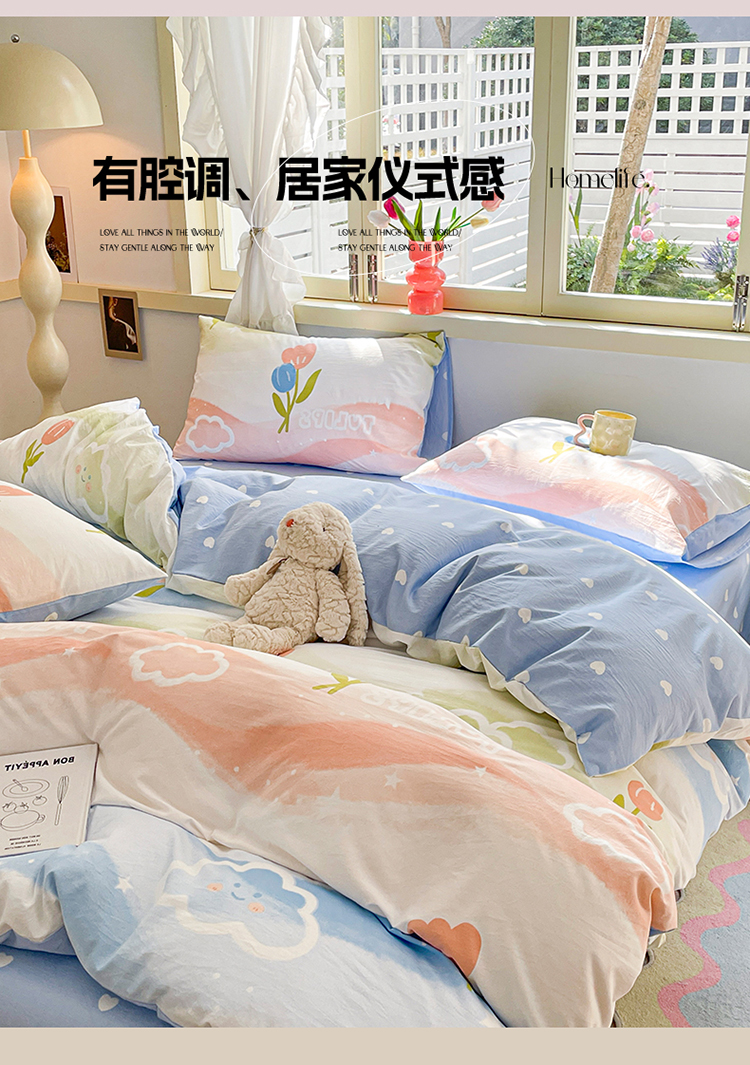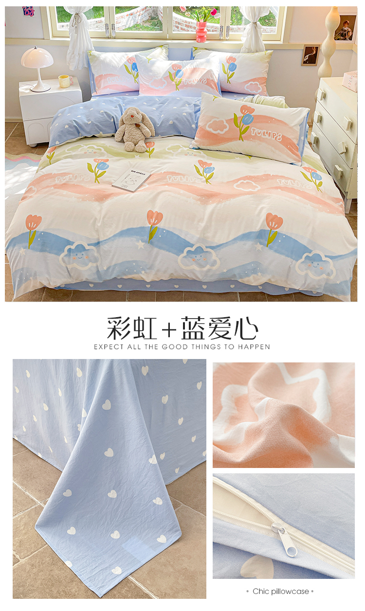 当前位置: 91家纺网 > 商品网购 > 床品套件 > 四件套 > 水洗棉四件套 > 盛秋家纺 2026新款水洗棉印花四件套-卡通系列 彩虹+蓝爱心